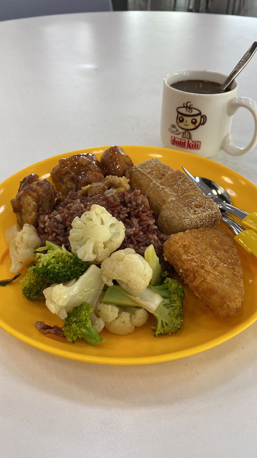 Vegetarian economical rice. Most dishes are vegan friendly and allium free. Has many different vegetables that can be found in economical rice stalls around Singapore. Open Mon-Fri 8:00am-5:00pm. Closed Sat. & Sun.