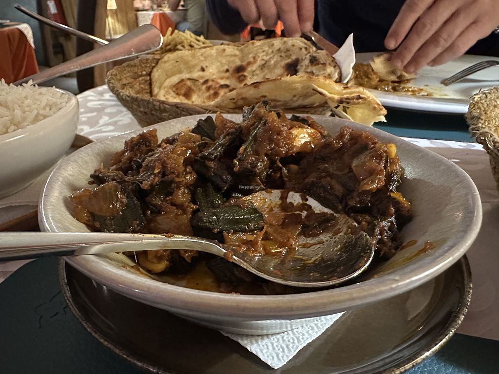 Chana masala, red lentils, okra, jack fruit &plain rice
