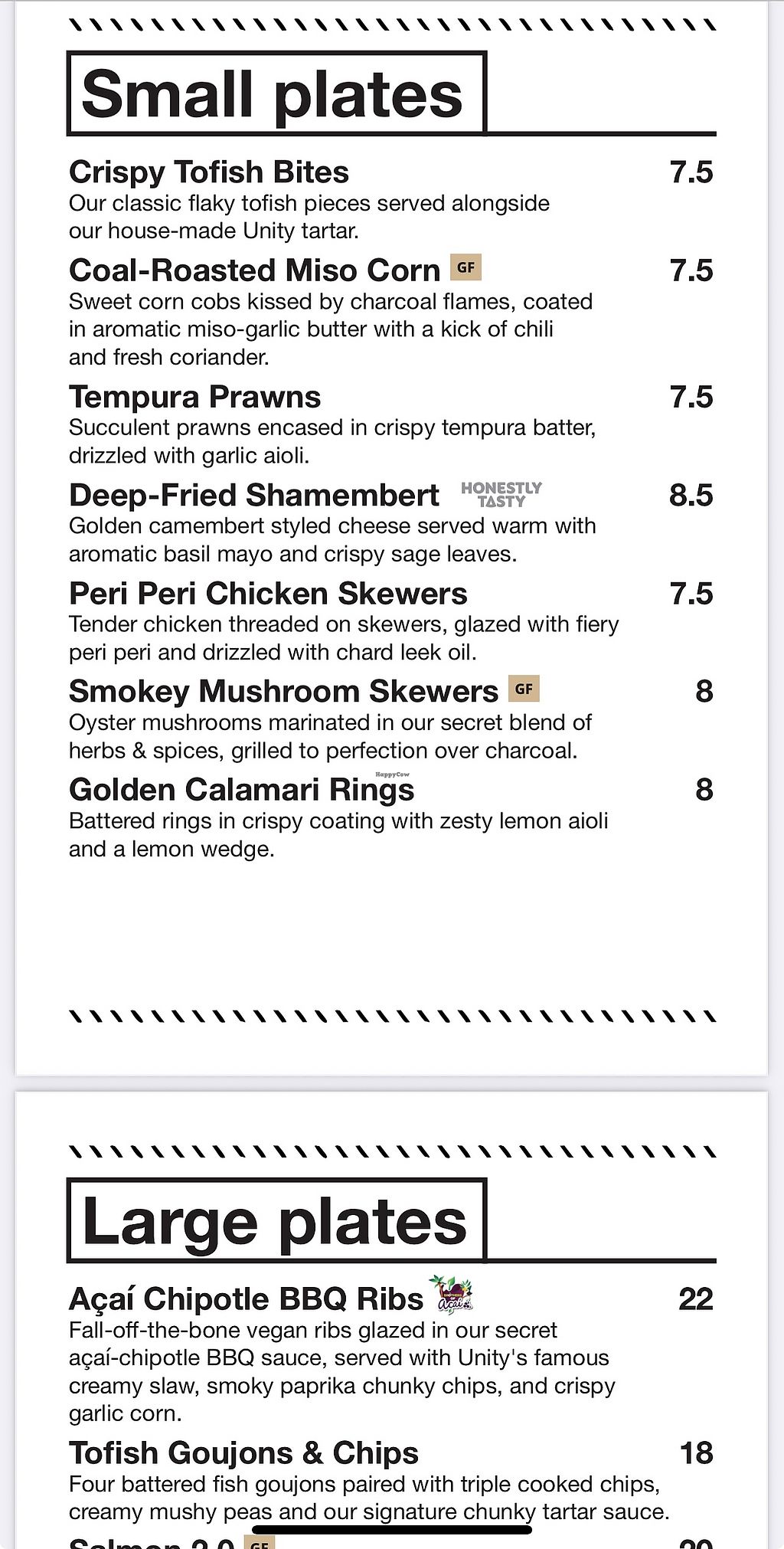 There was so much choice that you can't help but feel spoiled. We opted for variety and selected a number of small plates in the form of Crispy Tofish Bites, Smokey Mushroom Skewers, Golden Calamari Rings, Loaded Fries, and the Peri Peri Chicken Skewers - we couldn't recommend them enough. Everything is created with such care and accuracy that Unity Diner demonstrates a perfect example of going plant-based and retaining all your favourite dishes. I can't wait to go back and try the vegan carvery.