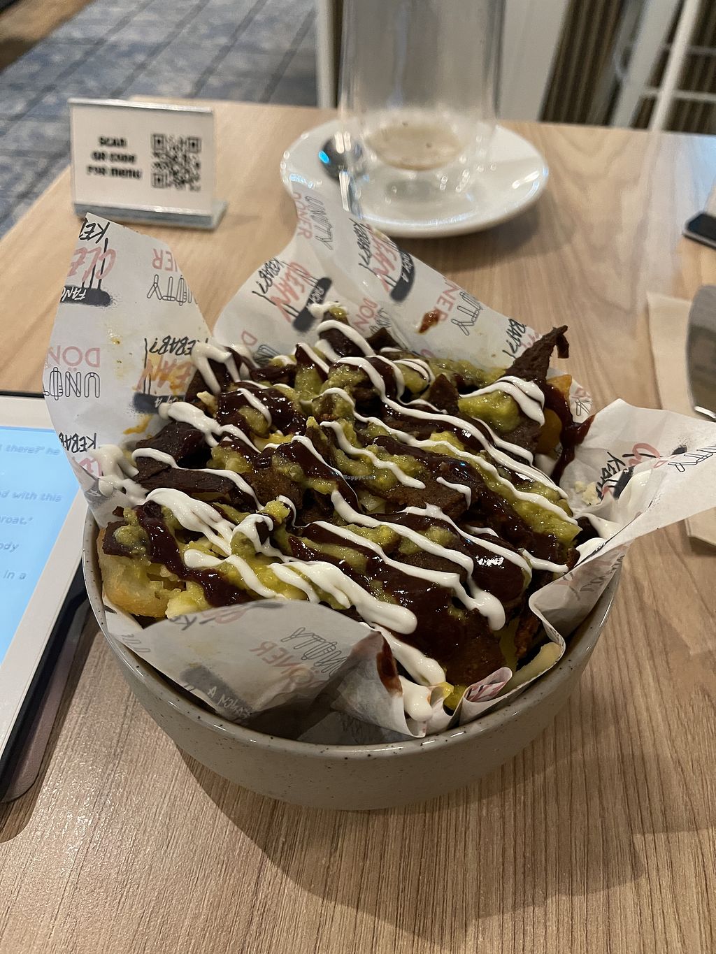 Been meaning to try UD for ages and finally went at the random hour of 4pm for a hot chai and a snack. Personally, the whole menu is not my style at all, very fast foody. I chose the chai latte and donner chips. The chai was one of the yummiest I’ve honestly ever had, and the chips were really yum. Will def come back, but would loveee to see some healthier things on the menu, soups, curries, stir fry - just something a bit fresh! The service was stun but the food took ages to come out, which is why it’s a 4/5 not 5/5.