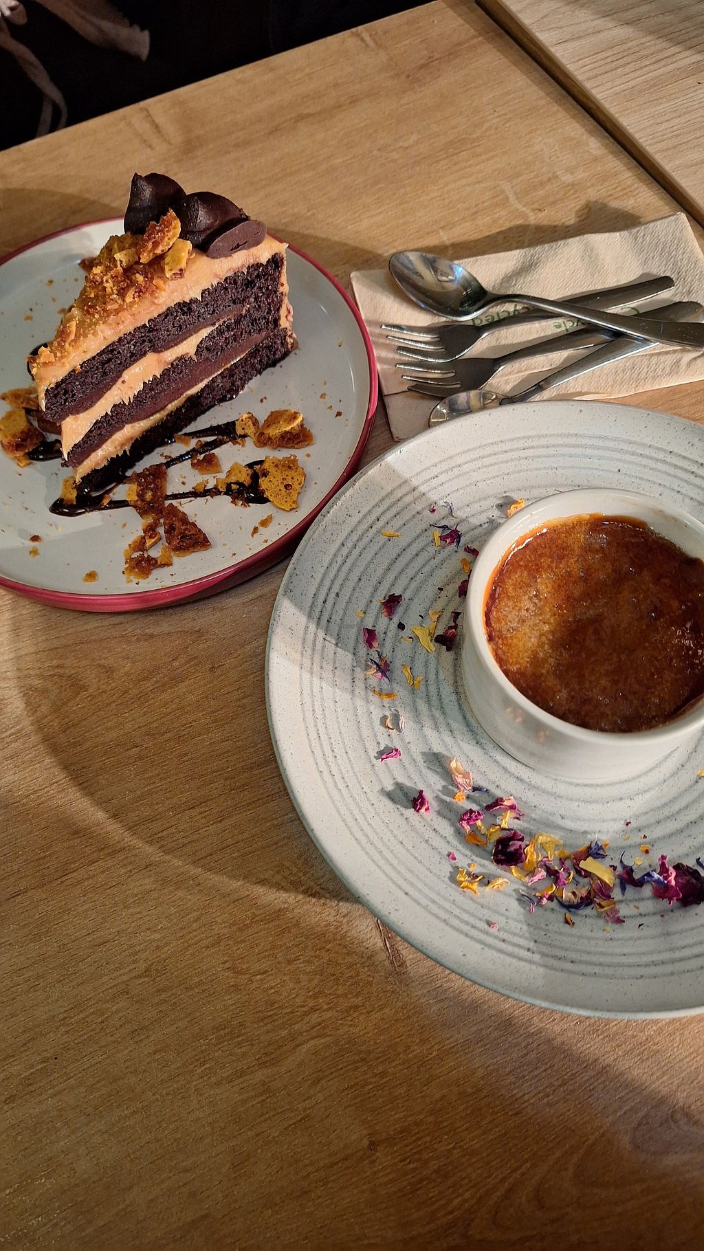 Salted caramel cake and creme brulee