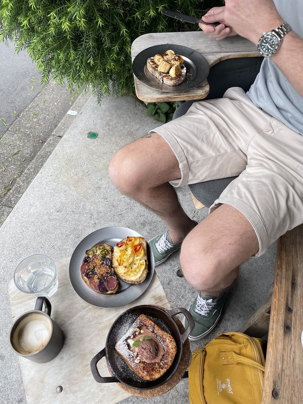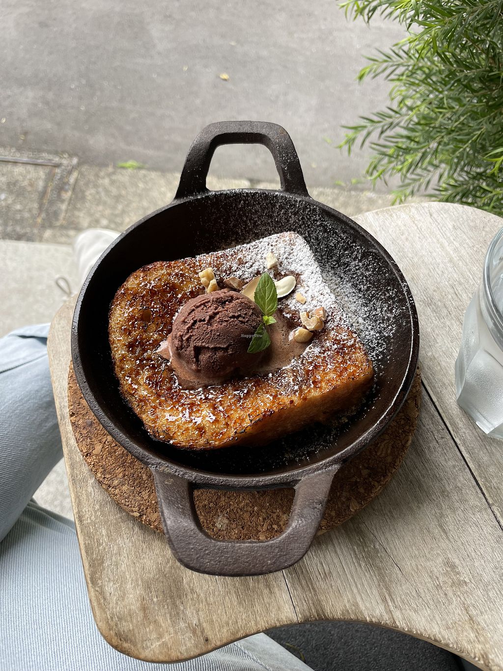 Really lovely coffee. The French toast was such a delicious breakfast with the ice cream on top. We also grabbed a few different topped toasts. Really cute spot to sit and watch the world walk by.