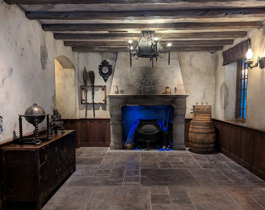 Serves meat, vegan options available. A restaurant located in the Wizarding World of Harry Potter - Ministry of Magic at Universal Epic Universe. Vegan options include ancient forest salad, lentil stew, and baklava.