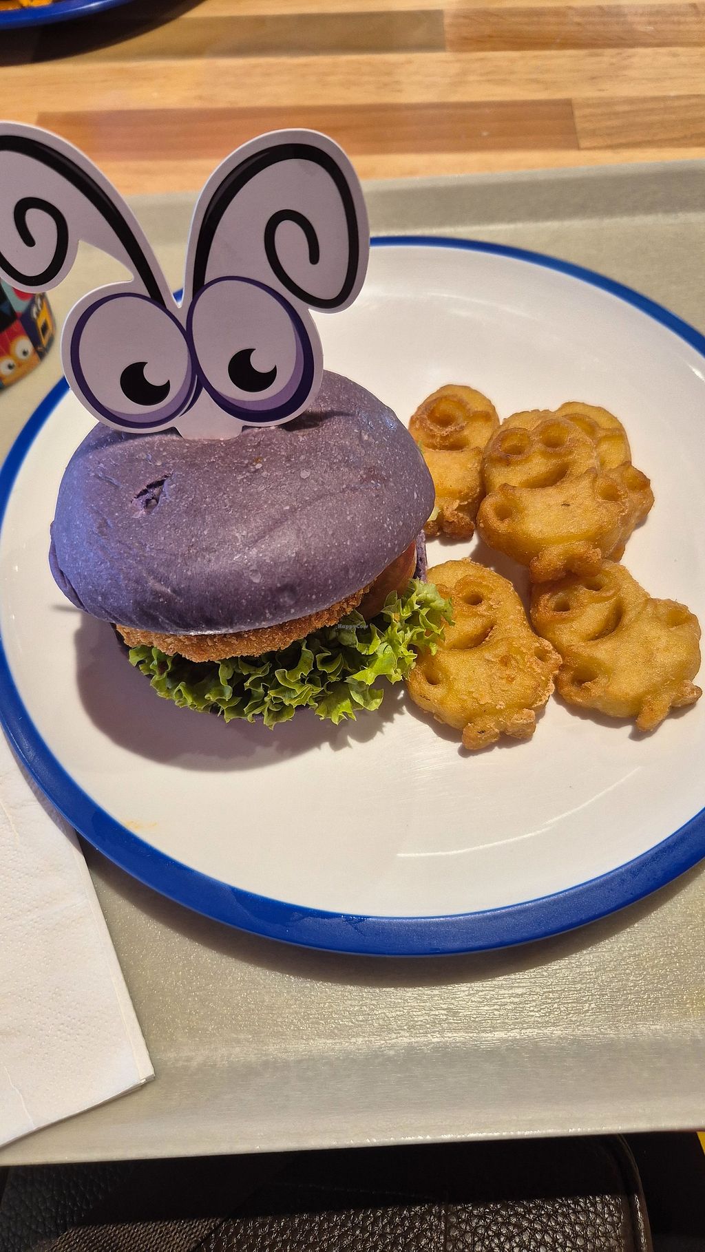 Lacto Ovo American Take-out Non-veg Serves meat, vegan options available. Minion-themed food stand offering a clearly labeled vegan burger and fries. Open Mon-Sun 10:00am-7:00pm. More