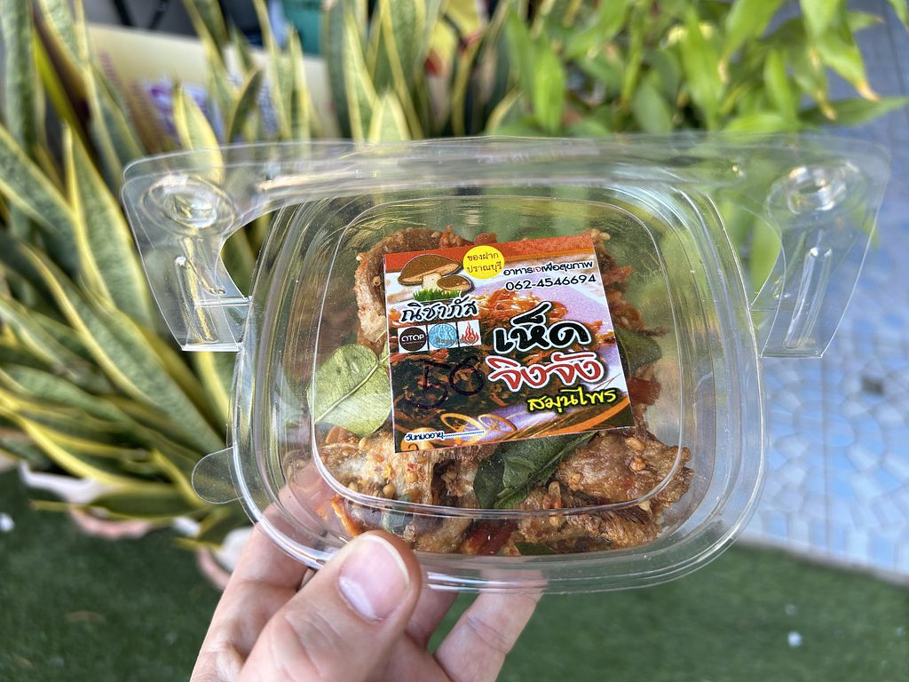 Vegan crispy pork belly with rice, mushrooms, and chilies