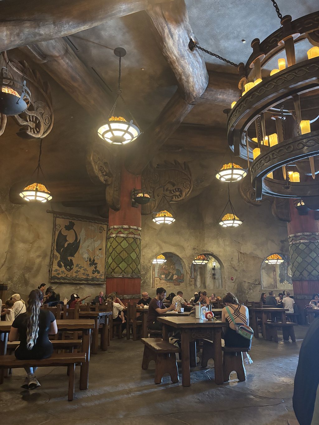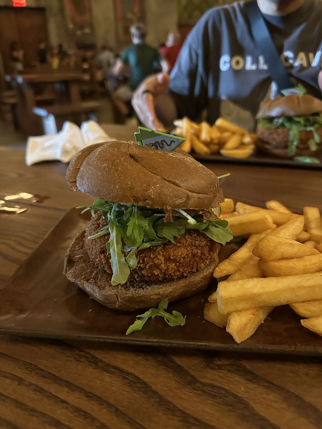 Serves meat, vegan options available. 'How to Train Your Dragon' themed restaurant offering a vegan burger with ancient grains patty with smoked berry aioli, arugula, and pickled cucumbers. Open Mon-Sat 10:00am-8:30pm, Sun 10:00am-9:00pm.