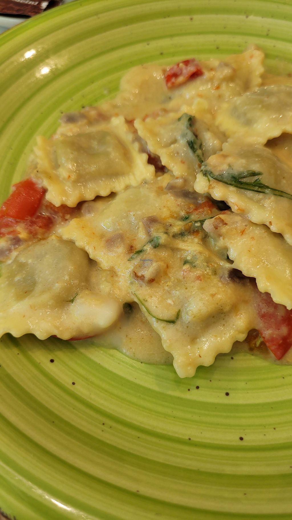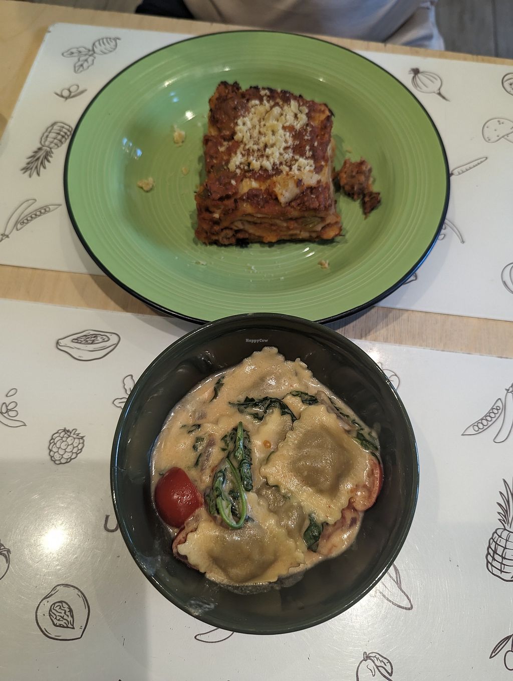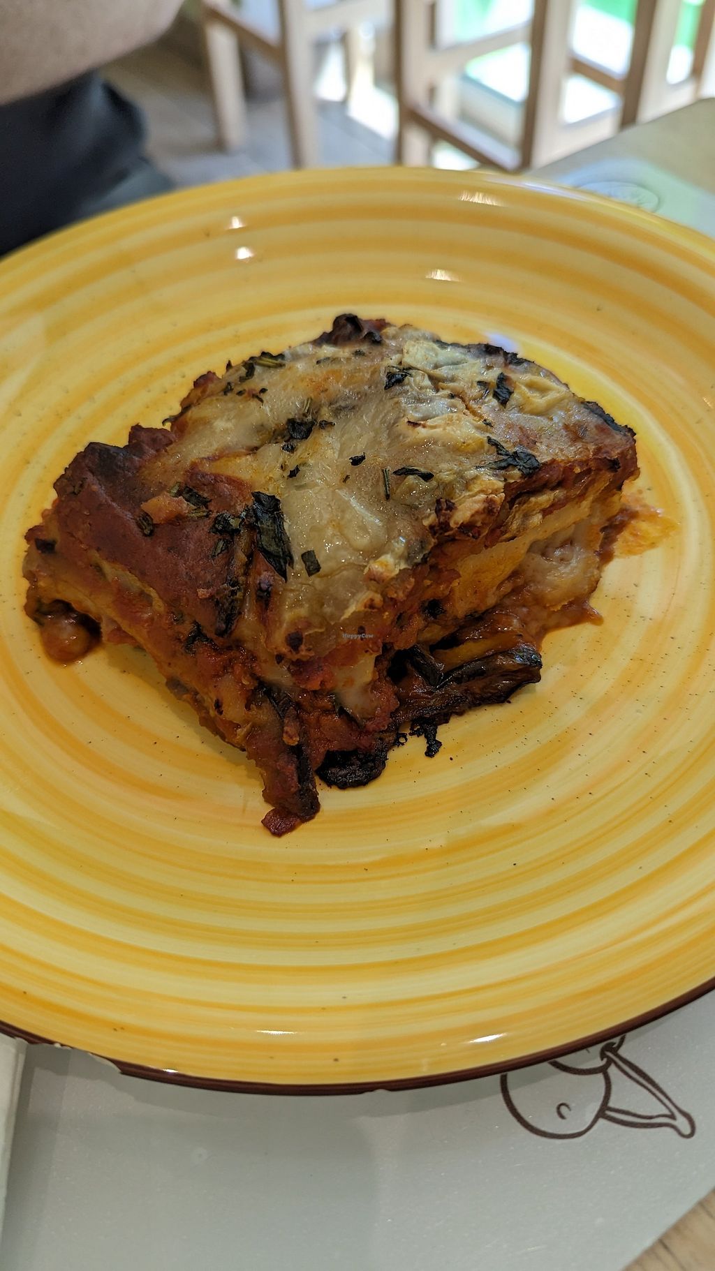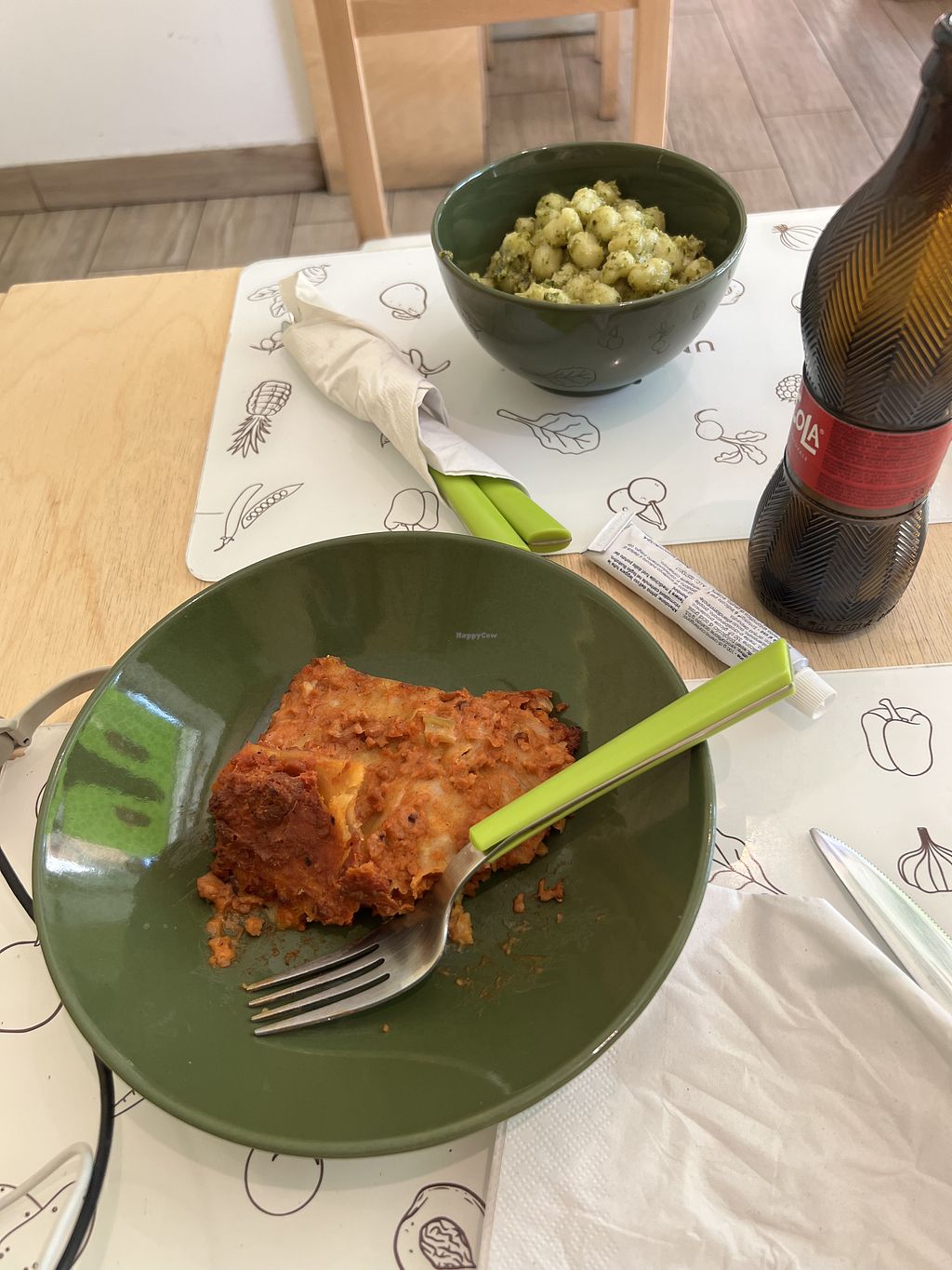 Microwaved, dry, bland and mushy lasagna and the gnocchi with a weird …
