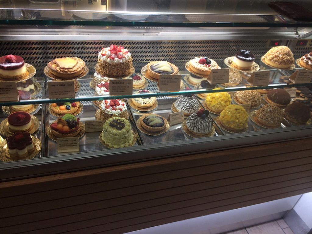 Strawberry cheesecake, chocolate tart thing and tiramisu