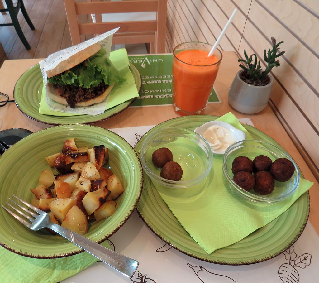 falafel, croquettes, baked üotatos, vegan kebab, freshly prepared juic…