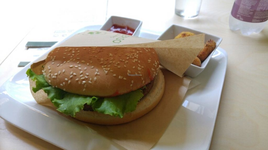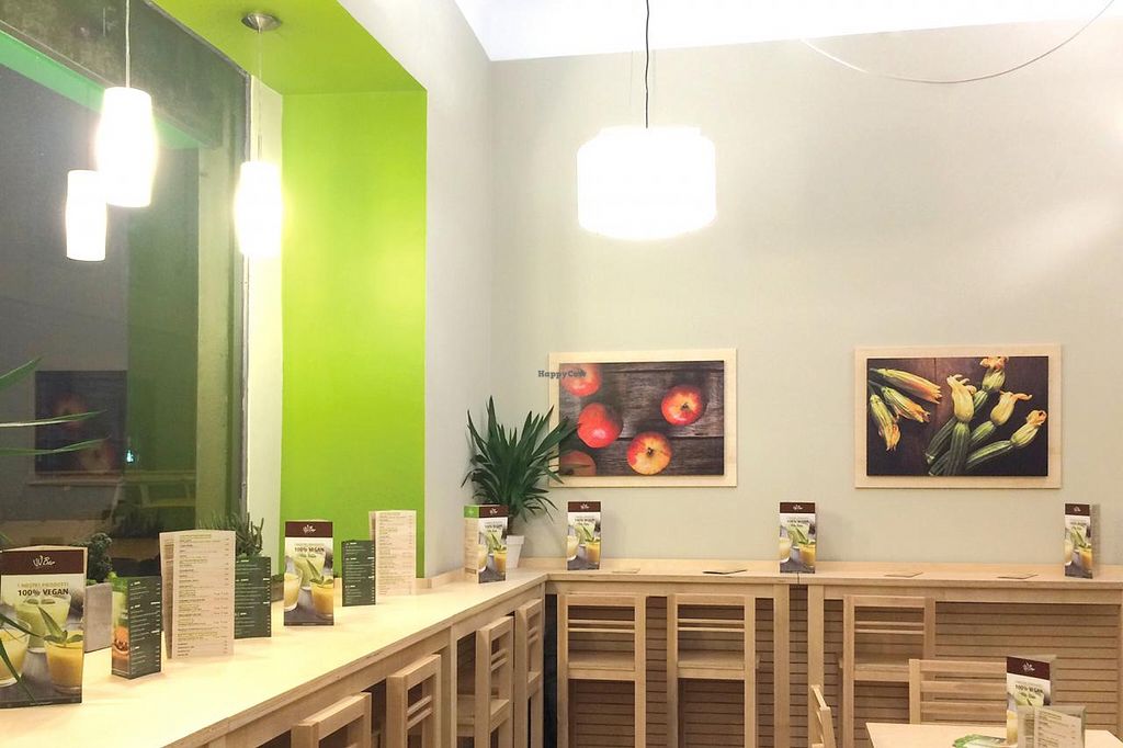 Franchise vegan fast food outlet, this one est. 2014. Counter service. Offers burgers, sandwiches, salads, wraps, desserts, and other vegan food. This one has also a bar service offering breakfast, centrifuged fruit juices, smoothies, cocktails. Reported closed, Jul 2018.