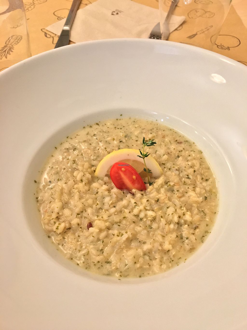 I had a tasty fresh juice, a wonderful vegan gluten free risotto, and then was overwhelmed by the vegan gluten free tiramisu - a desert I hadn't been able to enjoy for years... I must have asked 3 times if the cookie in the tiramisu is really gluten free, and the very friendly owner explained patiently with the help of an english cellphone dictionary that the flour is especially made for the restaurant.