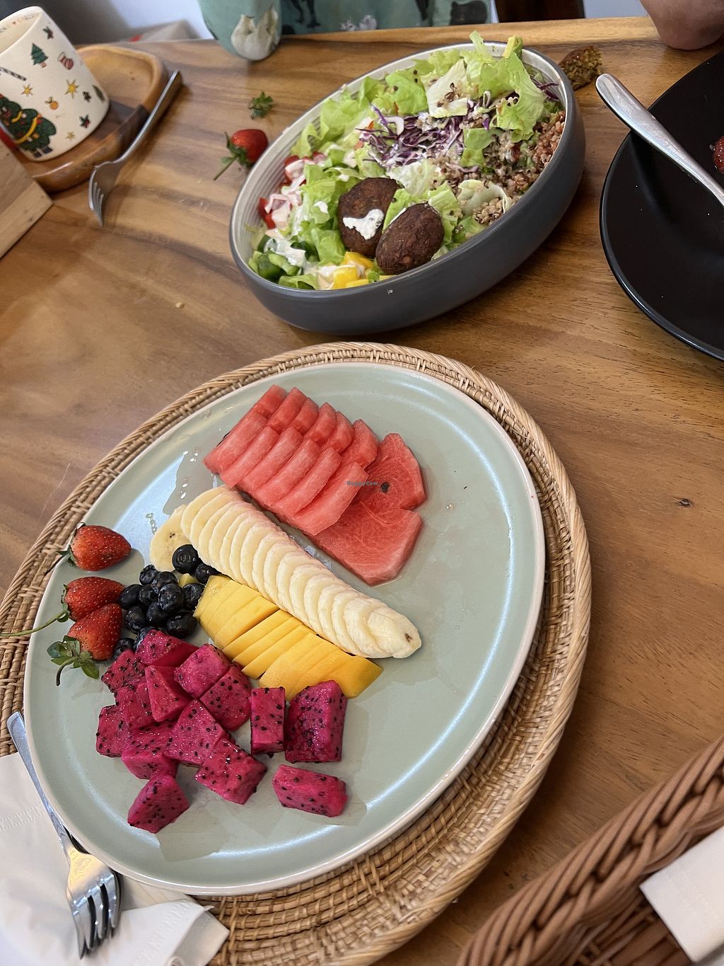 Great place, very cozy with a vegan menu. Several ice cream flavors. Coffee with oat milk available. We received a plate of free fruit for the kids. Really caring staff.