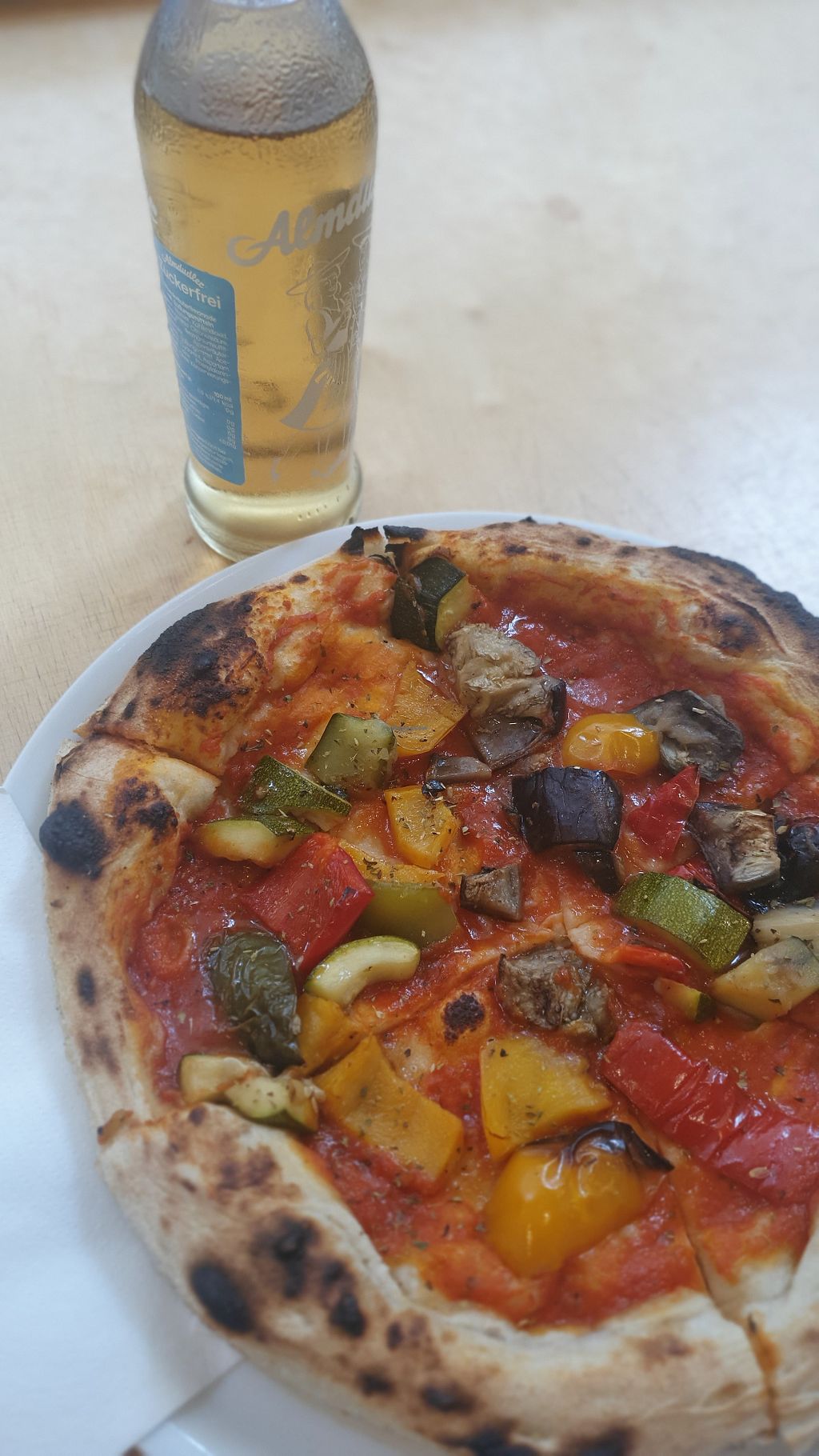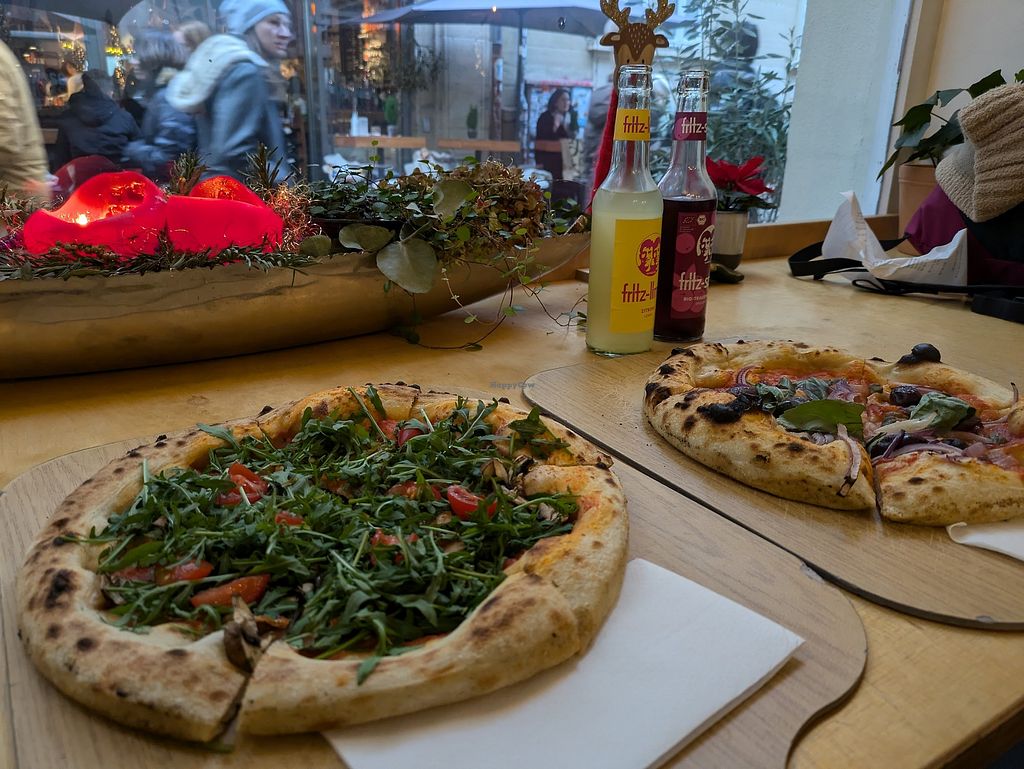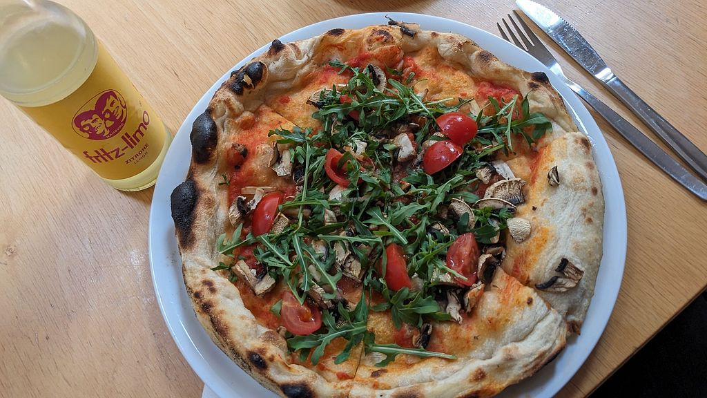 Vegane Pizza leider ohne veganen Käse, aber das ist bei dieser Pizza a…