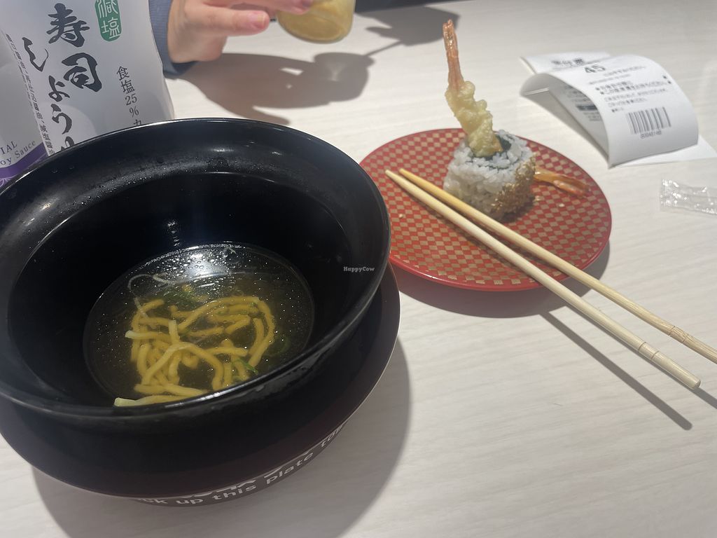 Serves meat, vegan options available. Conveyor-belt sushi restaurant chain offering vegan options, including soy meat nuggets, fries, soy butter fries, sushi rolls, inari, rice, tempura, and edamame. NOTE: Reported December 2024 to have limited vegan options – please send updates to HappyCow. Open Mon-Fri 11:00am-11:00pm, Sat-Sun 10:30am-11:00pm.
