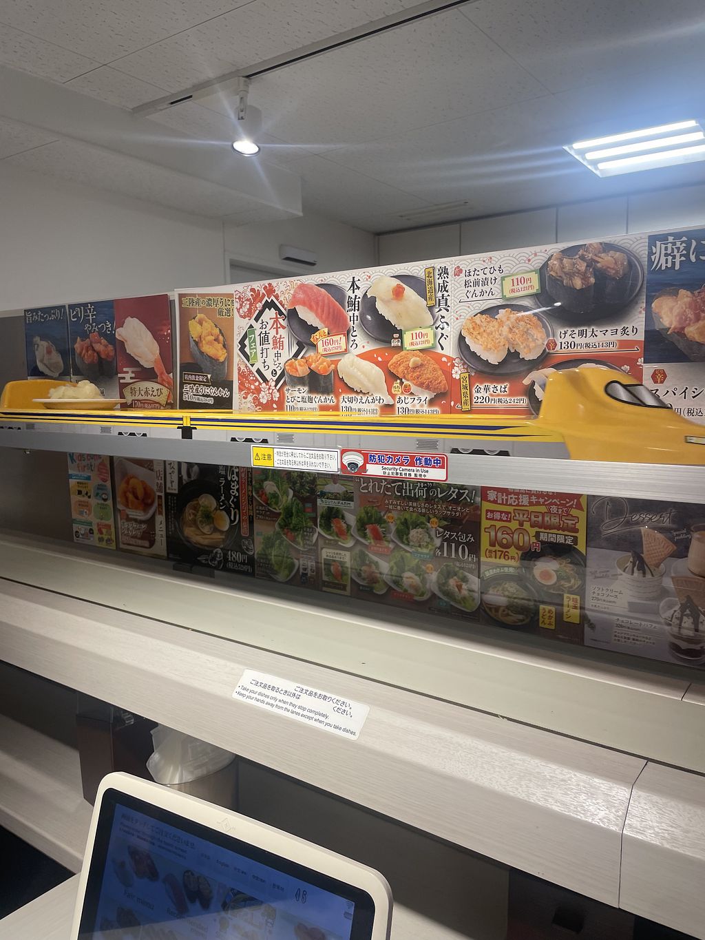 There was not as much vegetarian/vegan choices as described in the caption. It is convenient to order by tablet and have the food delivered by train. When we arrived we were seated straight away, but when we left there was a long queue! I had fries, nato sushi en cucumber rolls. It was tasty enough, but I would not return to this place due to the limited menu.