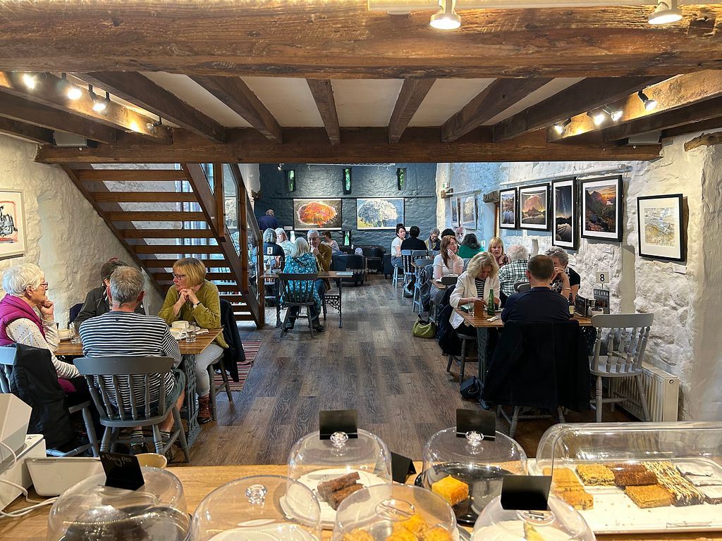 The cafe itself is mainly vegetarian with the addition of a few fish dishes, and there are around 3 or 4 vegan options. Like the previous review, they aren't the most varied dishes being stews curries etc, but they are tasty. They do serve vegan fruit crumbles with vegan ice cream, and usually have a few options here, but it is only flapjsck otherwise.