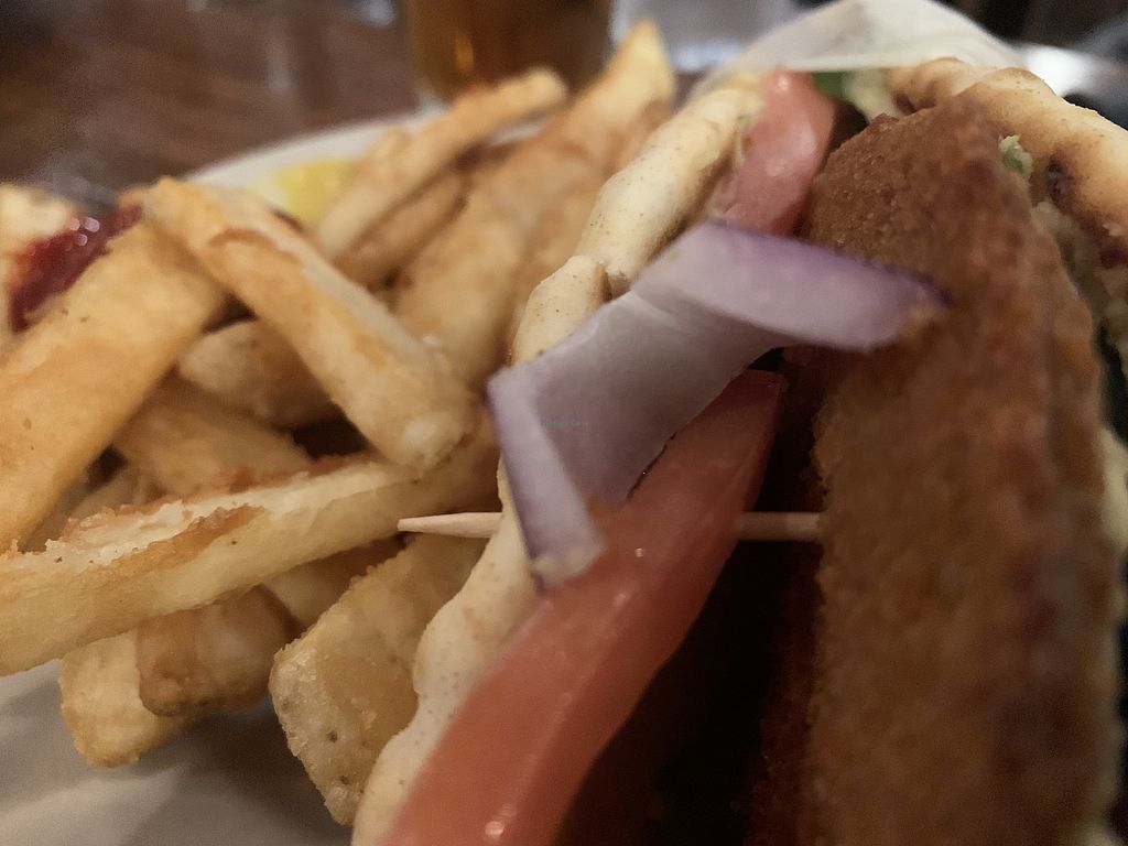 We got seitan tenderloin and seitan hot chicken sandwhich. Both use the same seitan patty, so it's really just a difference in how they dress it up. The hot chicken sandwhich has a spicy sauce, while the tenderloin had some veggies. Both were good, and I'd eat there again and be happy. They had some other vegan options as well including tacos with impossible crumbles. The veggie burger IS NOT vegan, as it contains egg and I believe the server said milk as well. However, they do have buns clearly labeled as vegan (+$2.50), which is nice as I'm always somewhat skeptical that they are buttered or something and the server or kitchen staff overlooks that detail. So I appreciated that. And the buns were quite good.