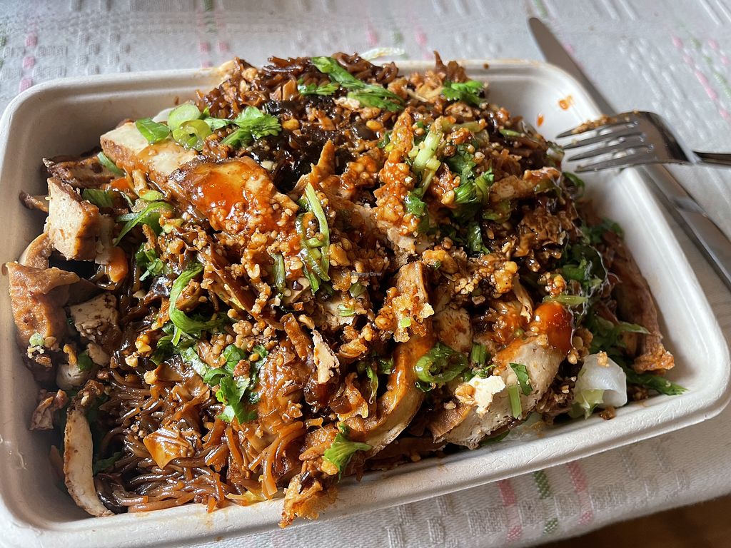 They have updated their menu and the vegan dishes are now marked. They have a salad, spring rolls and also two different noodle courses. I had the Tofu with fried rice noodles (takeaway) which was very tasty, medium spicey and flavorful. A big portion and it also included a lot of salad.
