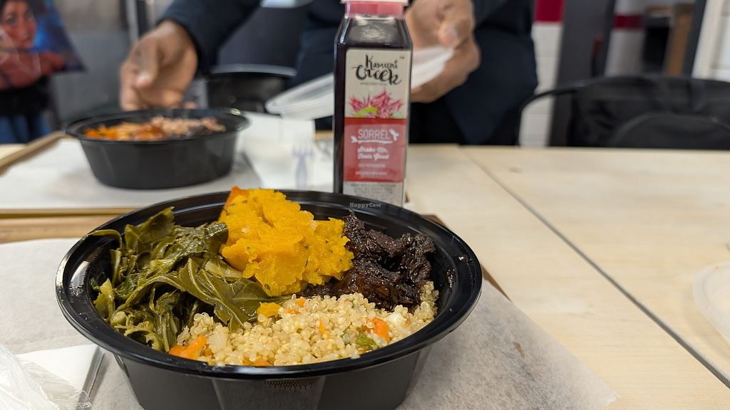 Read morePros: ALL vegan options., Steamed collard greens., Jerked seitan.