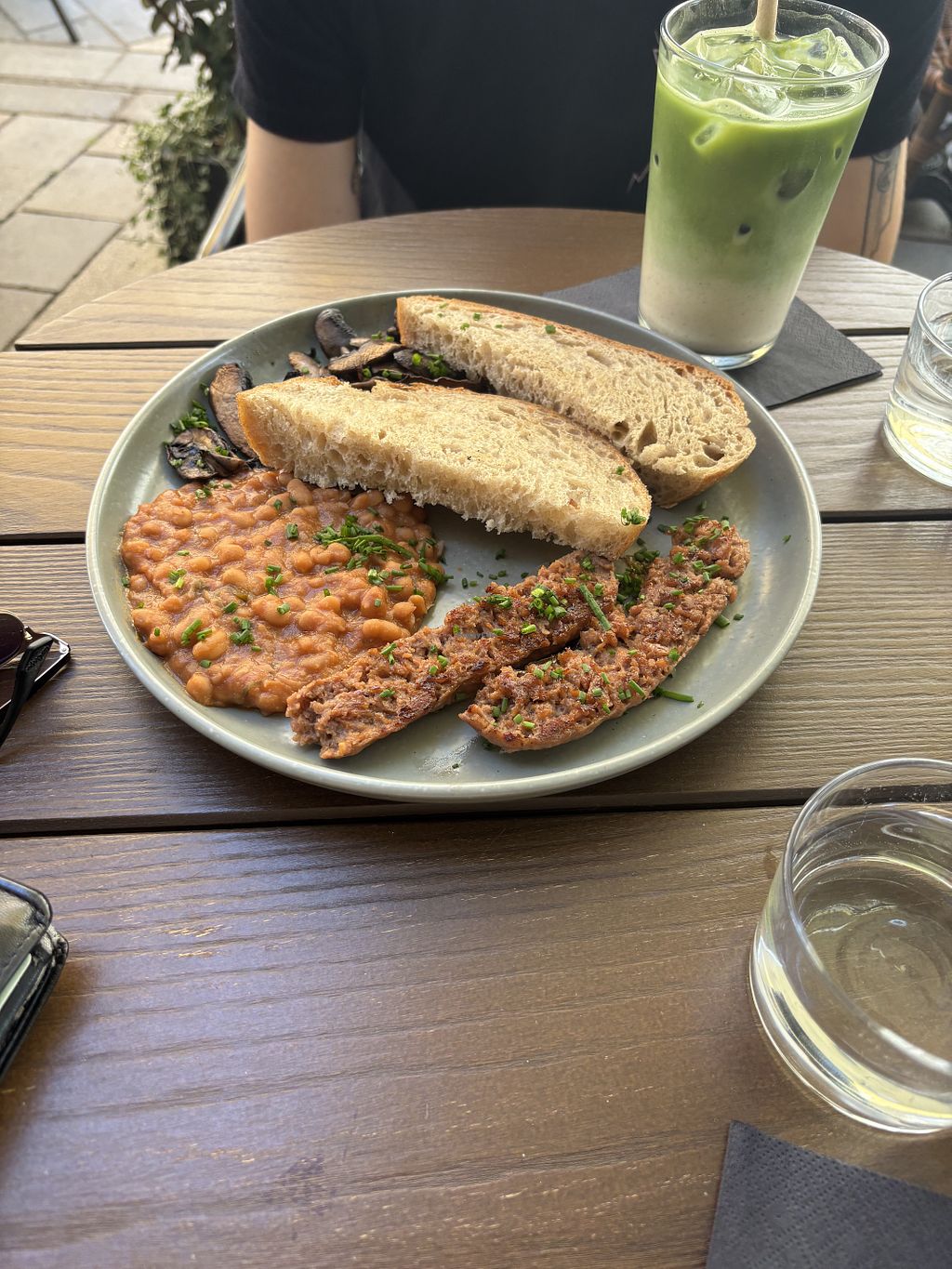 The vegan english breakfast is really really good, especially the beans and the scrambled Tofu! I would‘nt need the potatoes and would rather have some fresh veggies/more Salad but nonetheless… really tasty!!
