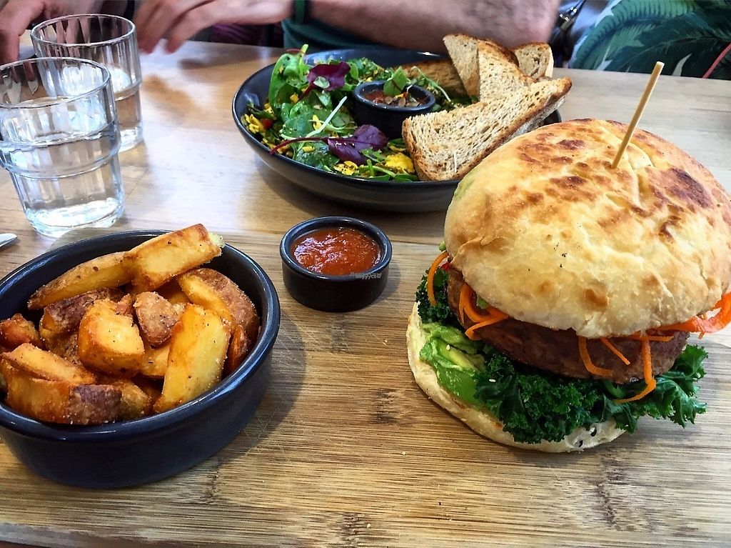 Tempeh burger, and tofu scramble