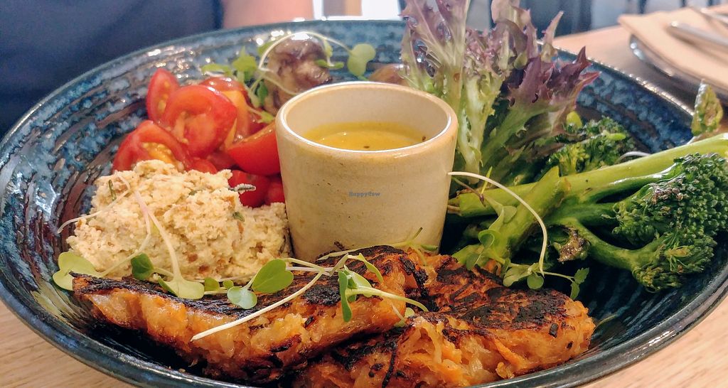 Cauliflower fritters with pumpkin hommus