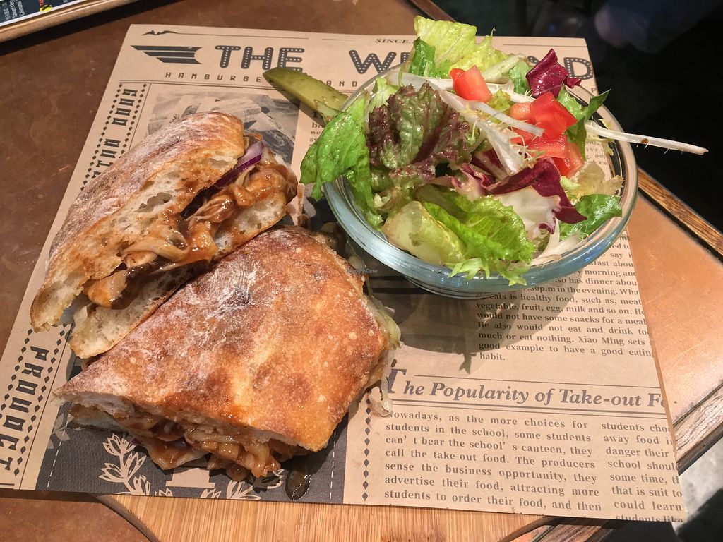 Pulled mushroom sandwich, subbed salad for fries. Delicious!