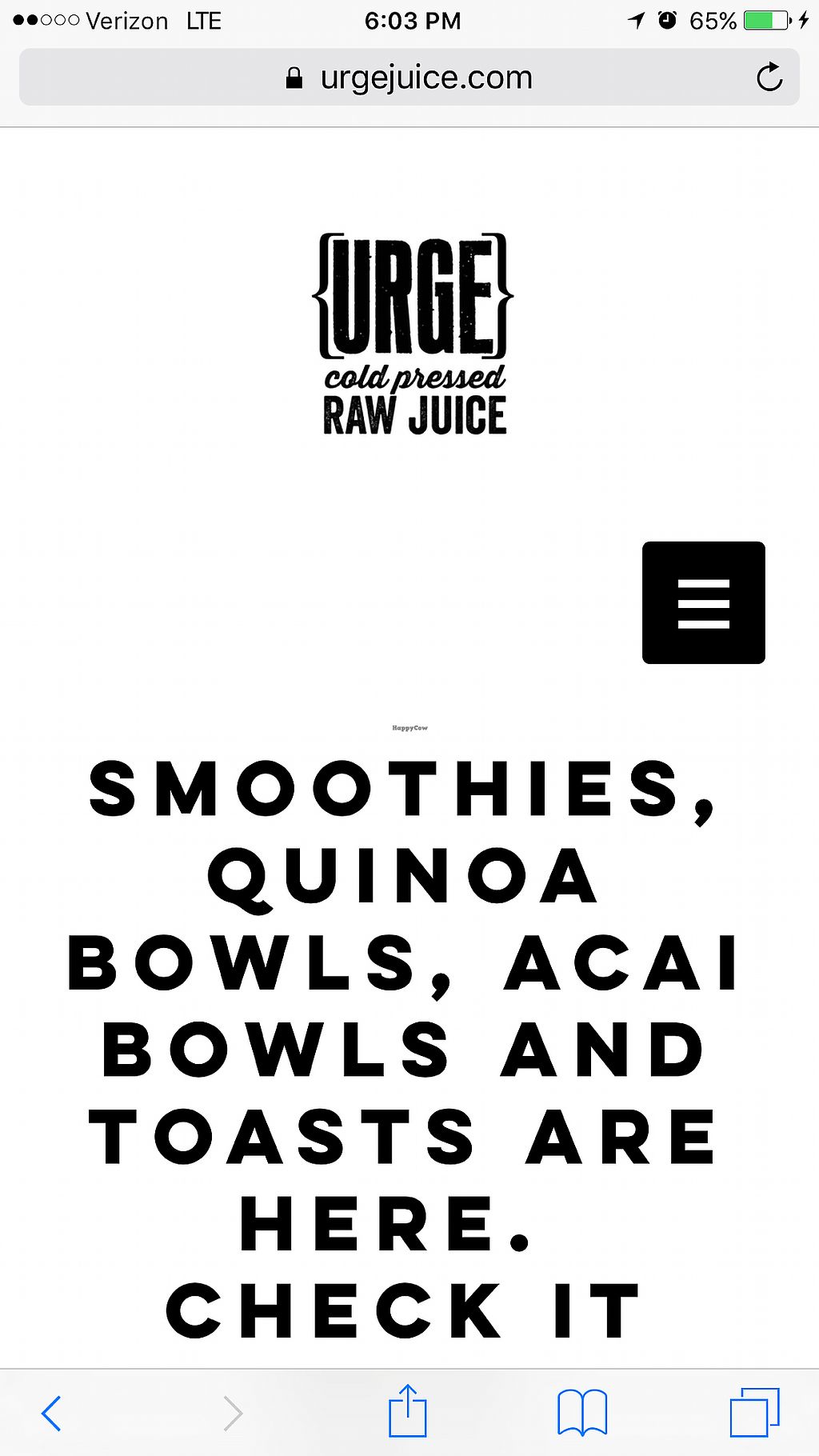 Vegan American Organic Fast food Juice bar Take-out Organic cold pressed juice shop offering acai bowls, toast, smoothies, grab-n-go quinoa bowls, and other treats and snacks. Reported closed, Jan 2021. More