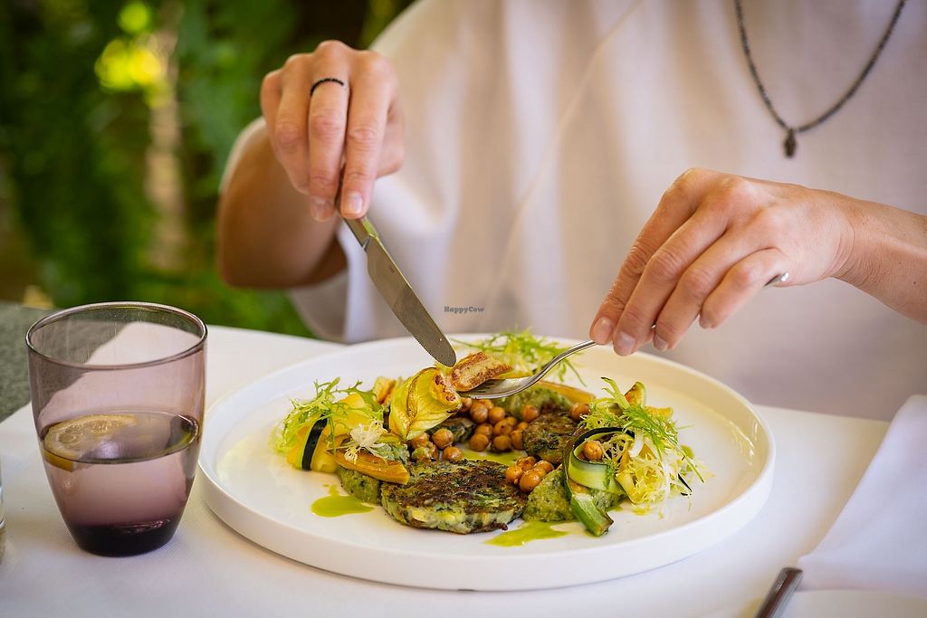 Serves meat, vegan options available. Castle hotel with a restaurant that offers clearly labeled vegan dishes, including Jerusalem artichokes with beans, orange & chicory, cabbage rolls, and a dark chocolate dessert. Open Mon-Sun 13:00-21:30.