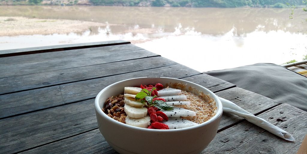 Serves meat, vegan options available. Located by the river. Has vegetarian dishes on the menu some of which can be made vegan. Specify no fish sauce, egg. Reported closed October 2022.