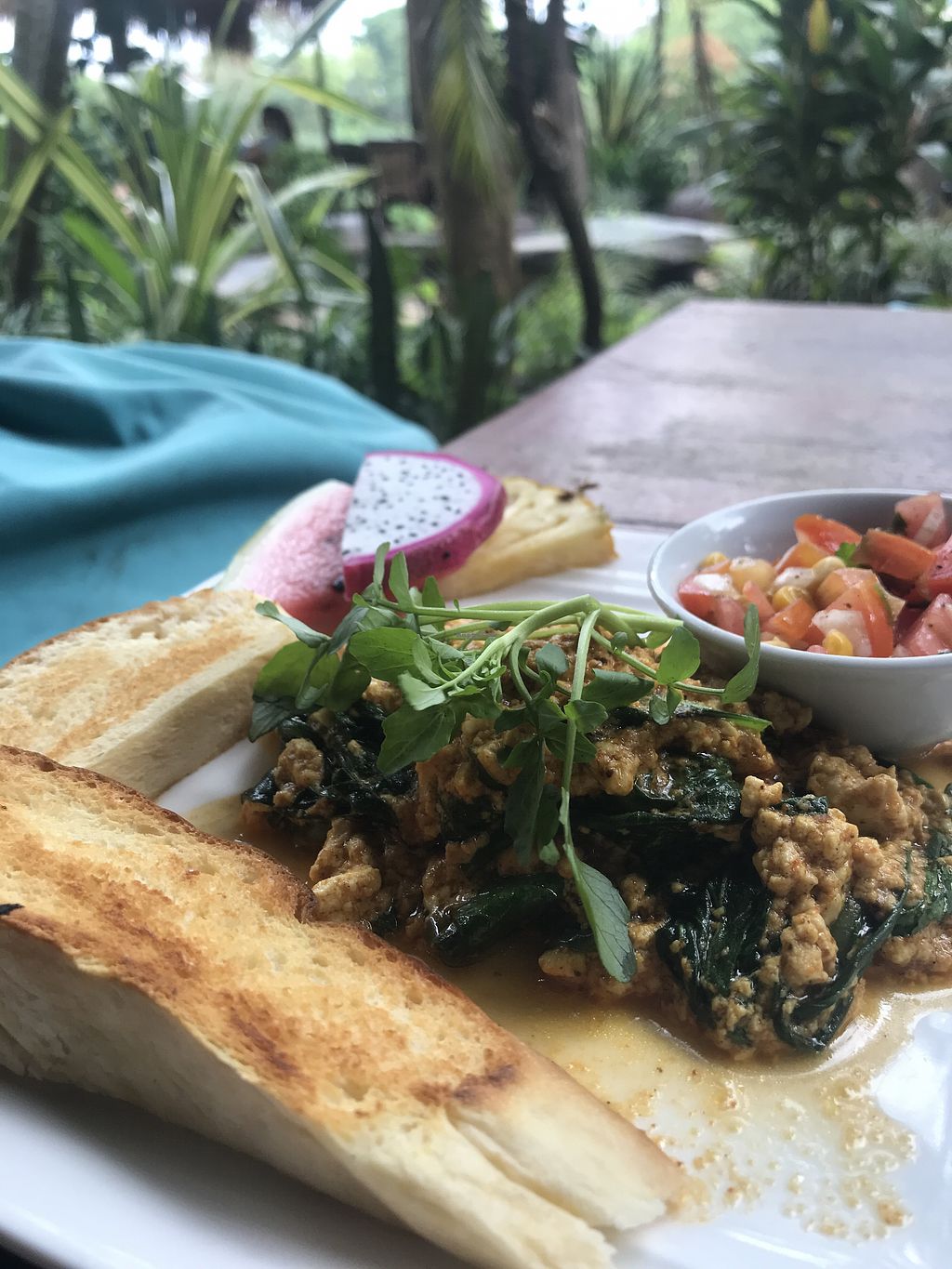 Went there for the lunch and had such a lovely time. The location is just amazing and totally inviting to hang out and linger there all afternoon. The tofu larb was amazing and staff friendly enough. They did have a vegan menu but upon coming back for a smoothie bowl (very good as well) I was informed that some items on the vegan menu actually had butter in it so be aware and just double check.