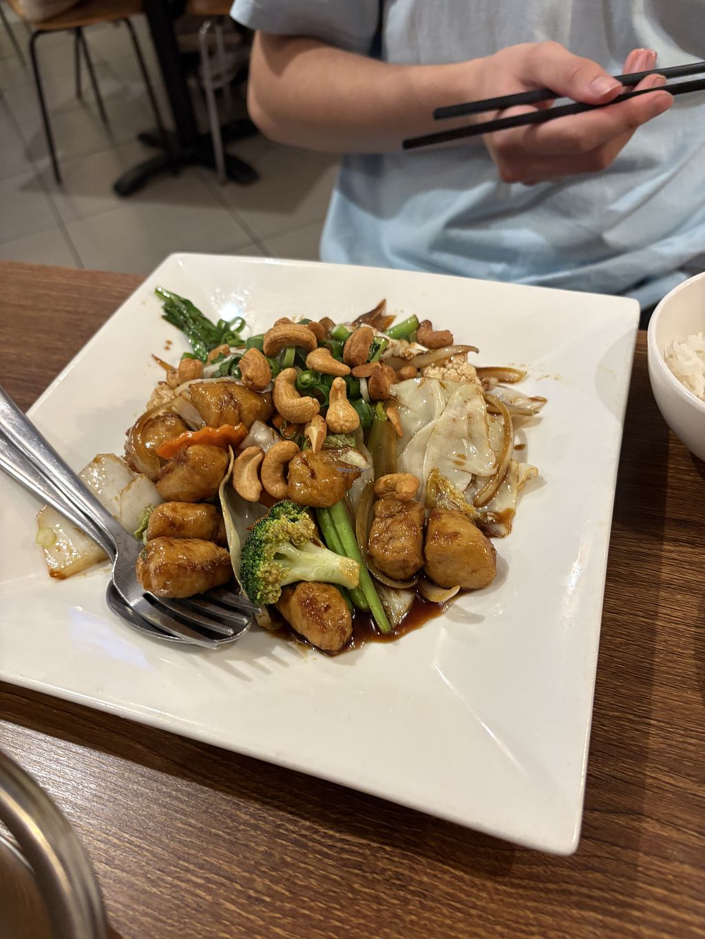 We Had the spring rolls, dumplings, satay tofu and vegetables, and fried rice. Overall it was pretty nice. Our favourite was the satay tofu and vegetables. We don’t really do faux meat, and this restaurant had a lot of meat substitutes on their menu. Having said that, there were enough choices for us. I would go back for the satay dish.