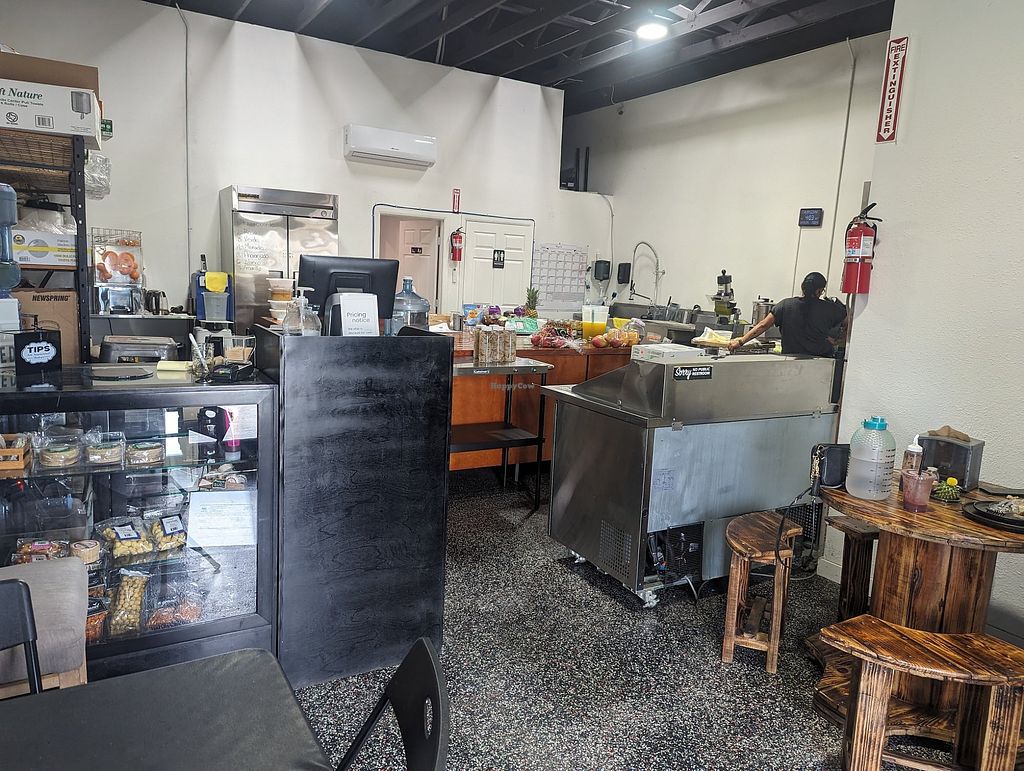 Visited the location that appears to be mostly a food prep business with a take out or small sit down area option. We tried the “chicken” sandwich with fries, gorditas (bean and cheese, rajas con crema, papa con chorizo, and mole), and a carrot cake to go. And tried three different juices. All were very tasty! Staff was attentive and informative. Definitely give this spot a try if you’re in the Southbay/Chula Vista area.