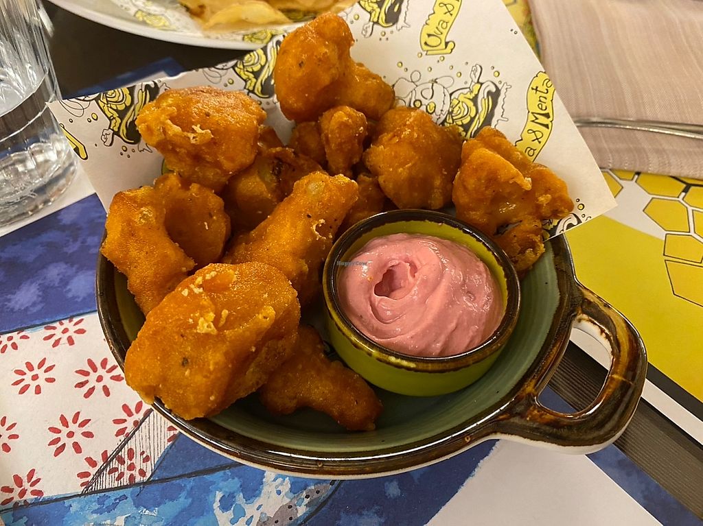 The restaurant was very colorful and the staff very attentive, friendly and kind. It is true that there were many options but the pizzas leave a little to be desired (the dough was undercooked) but the potatoes and the battered cauliflower were very good, and the sweet too.