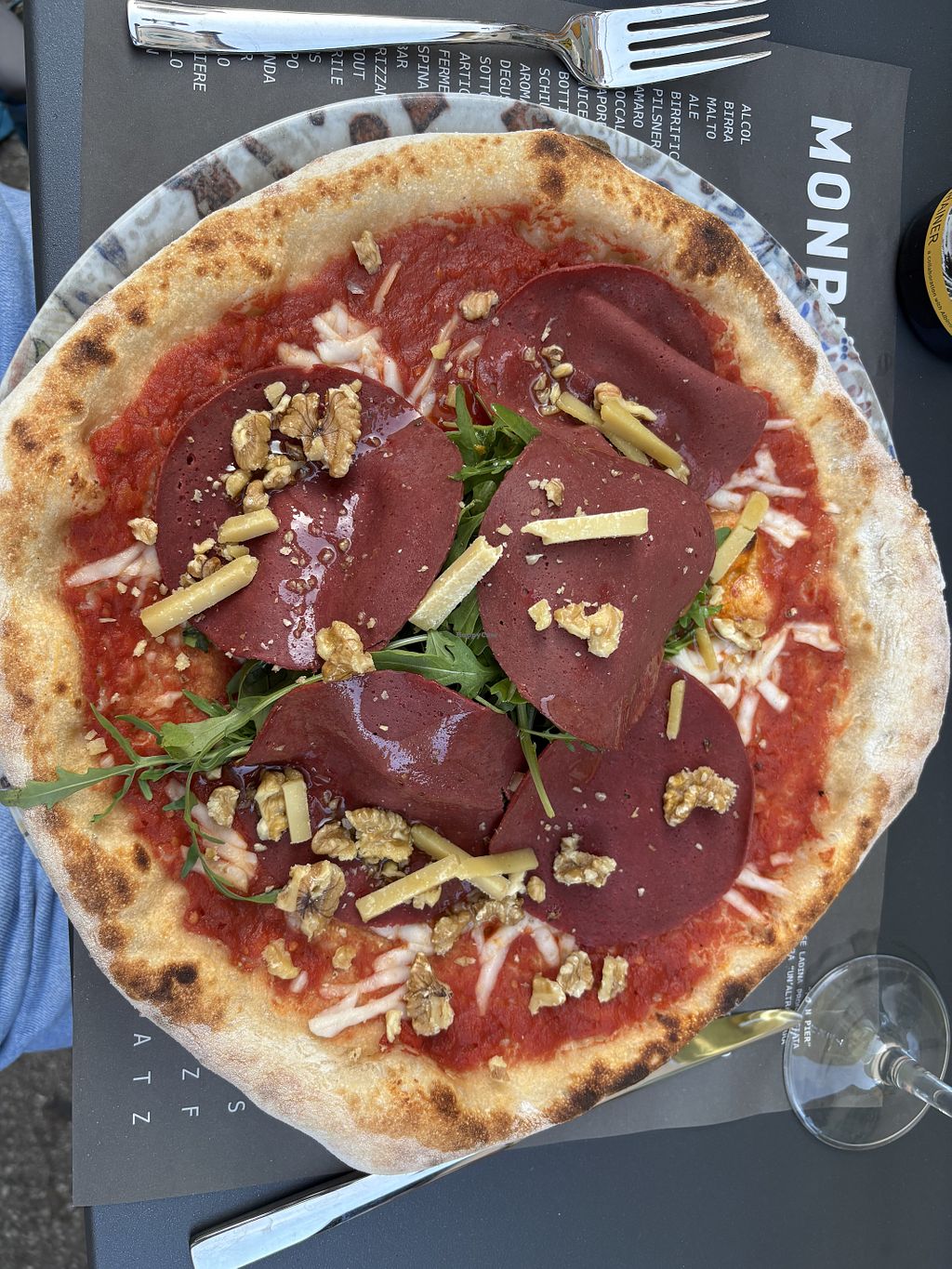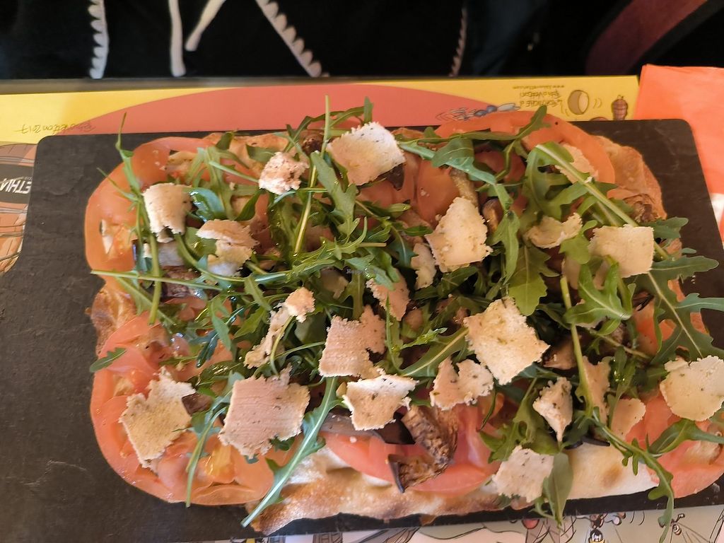 Read moreWhat I didn't like, silly as it might be, is that all the names of the vegan pizzas were some mashup (and not really good ones) between the word vegan and some other word. That saddens me a little because in my modest experience, non vegans rarely like to be associated with the term and I feel like they would be less likely to order a pizza with such names and that is listed In a separate menu page. The vegan sud for instance really shows how this "segregation" is quite overdone, as it's simply a pizza without cheese (or red pizza), so it didn't really need to be called vegan-something, and it could be listed with the rest of the menu, with the appropriate vegan-friendly symbol next to it (which the menu does have in the form of a little broccoli).