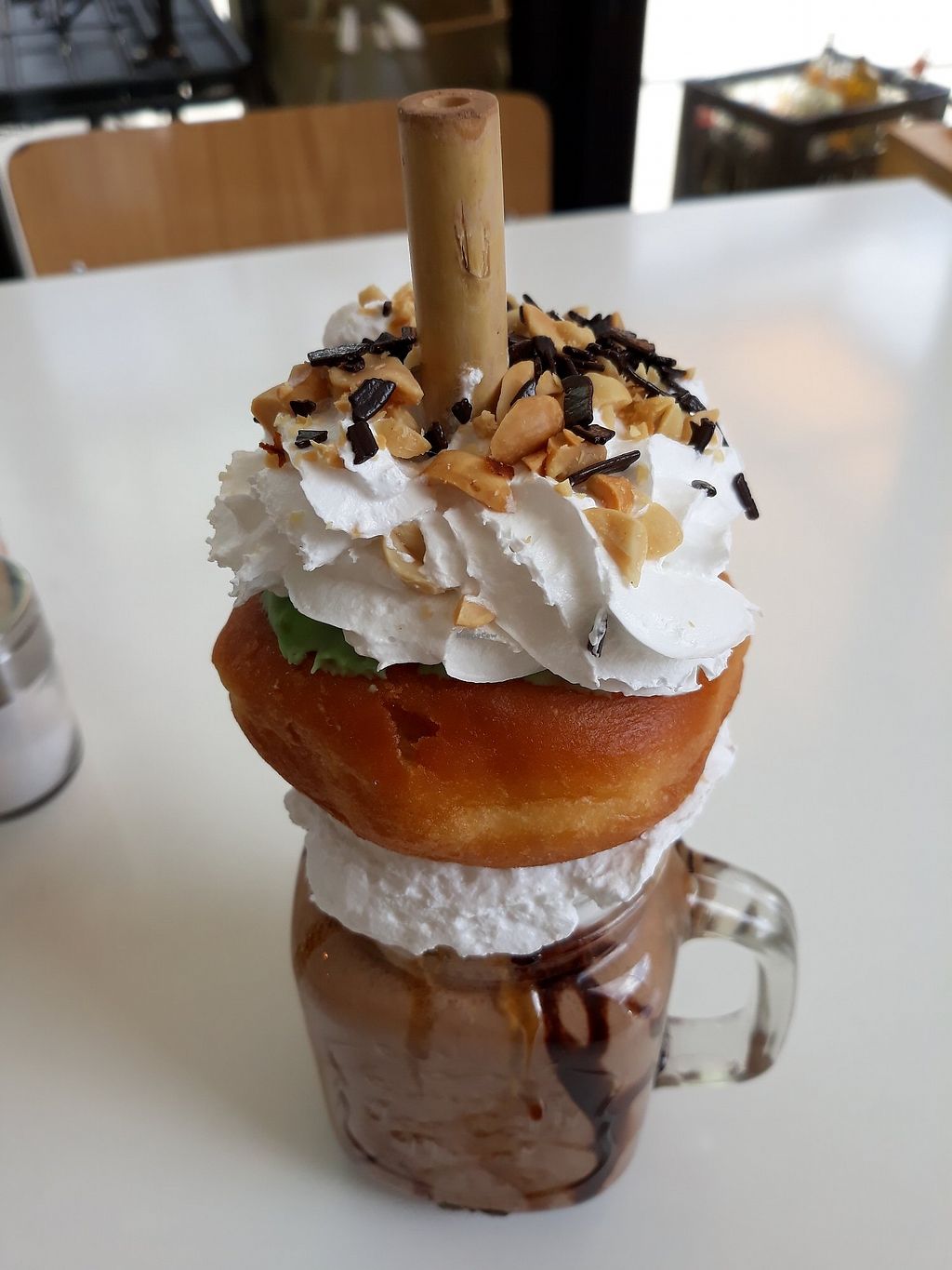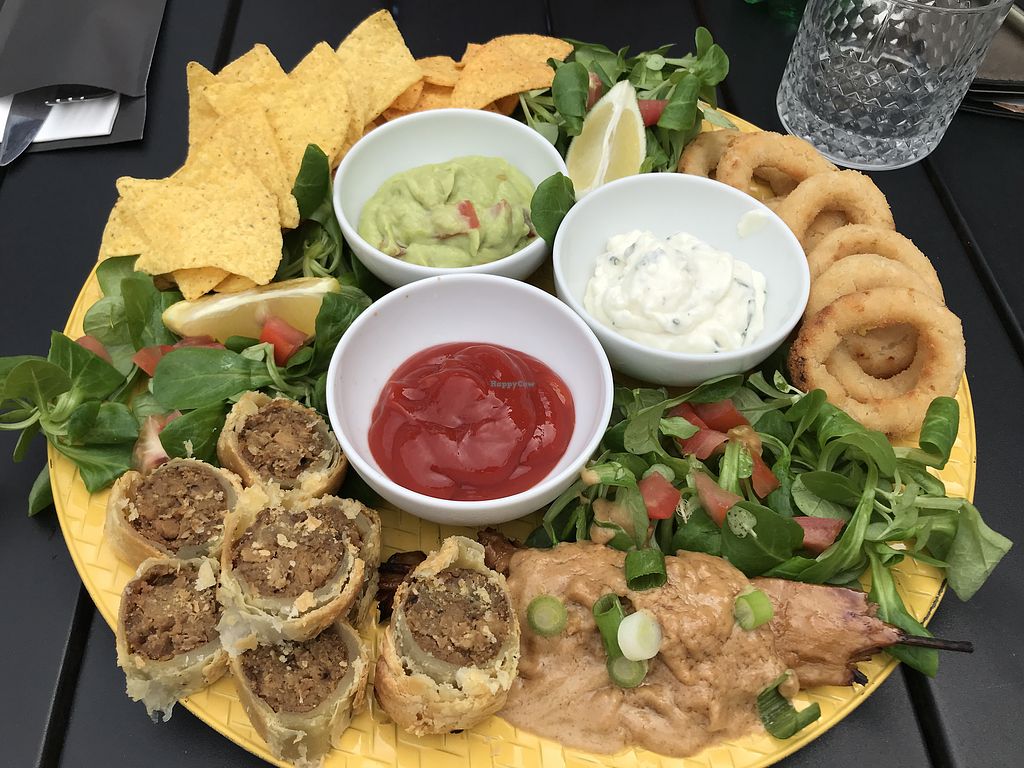 Onion rings with tartare sauce, drinks are Firefly peach&green tea, Fr…