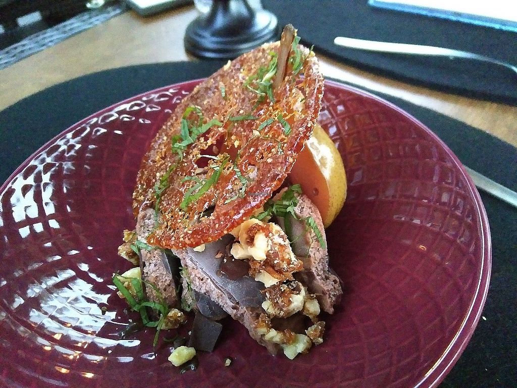 Rotweinbirne, Schokolade, Walnüsse & Karamell