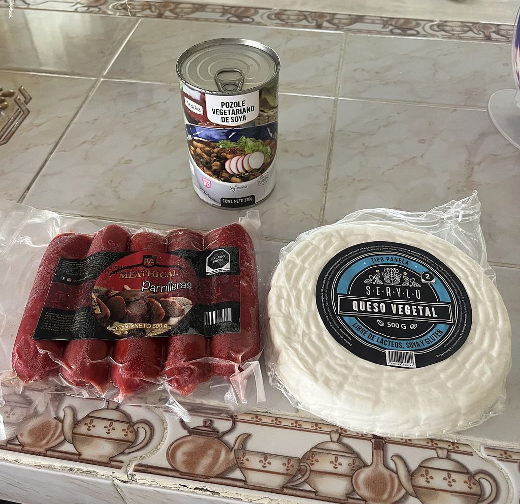 For the last few days, I’ve been eating beans every day to sustain myself— as much as I love beans, stocking up on some variety definitely helps, as there are scarce options in the Rancho I’m visiting. This place is a godsend — they have faux meats, different cheeses (cheddar, mozz, etc.) as well as some dry goods ranging from protein cookies, canned pozole, nooch — among other things. Aguascalientes isn’t the most vegan-friendly city, but having places such as this helps a ton