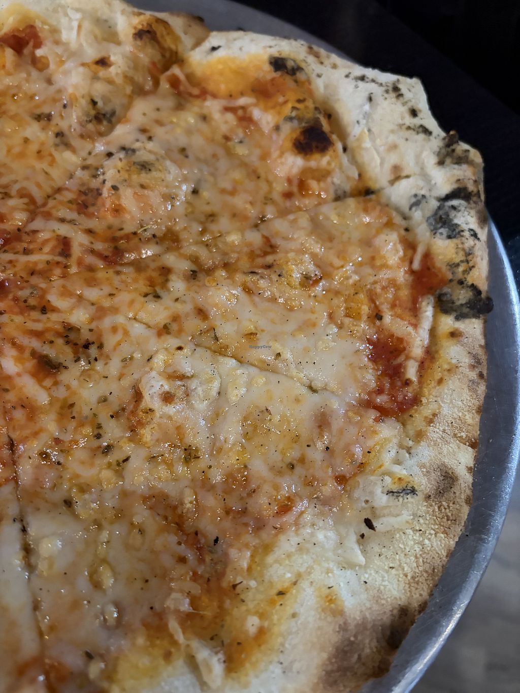 Vegan options include vegan cheese, tomato sauce and vegetables. High price point. Pizzas Neapolitan thin and are often burnt.