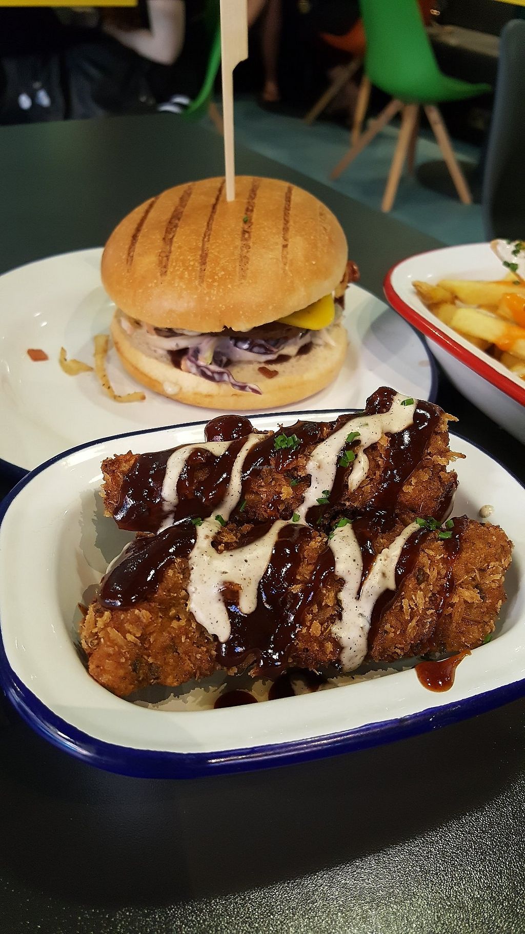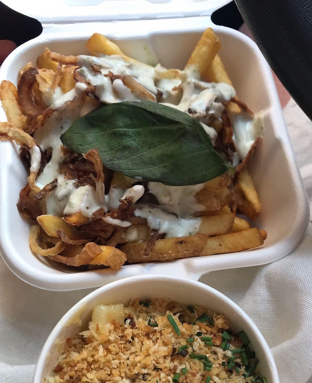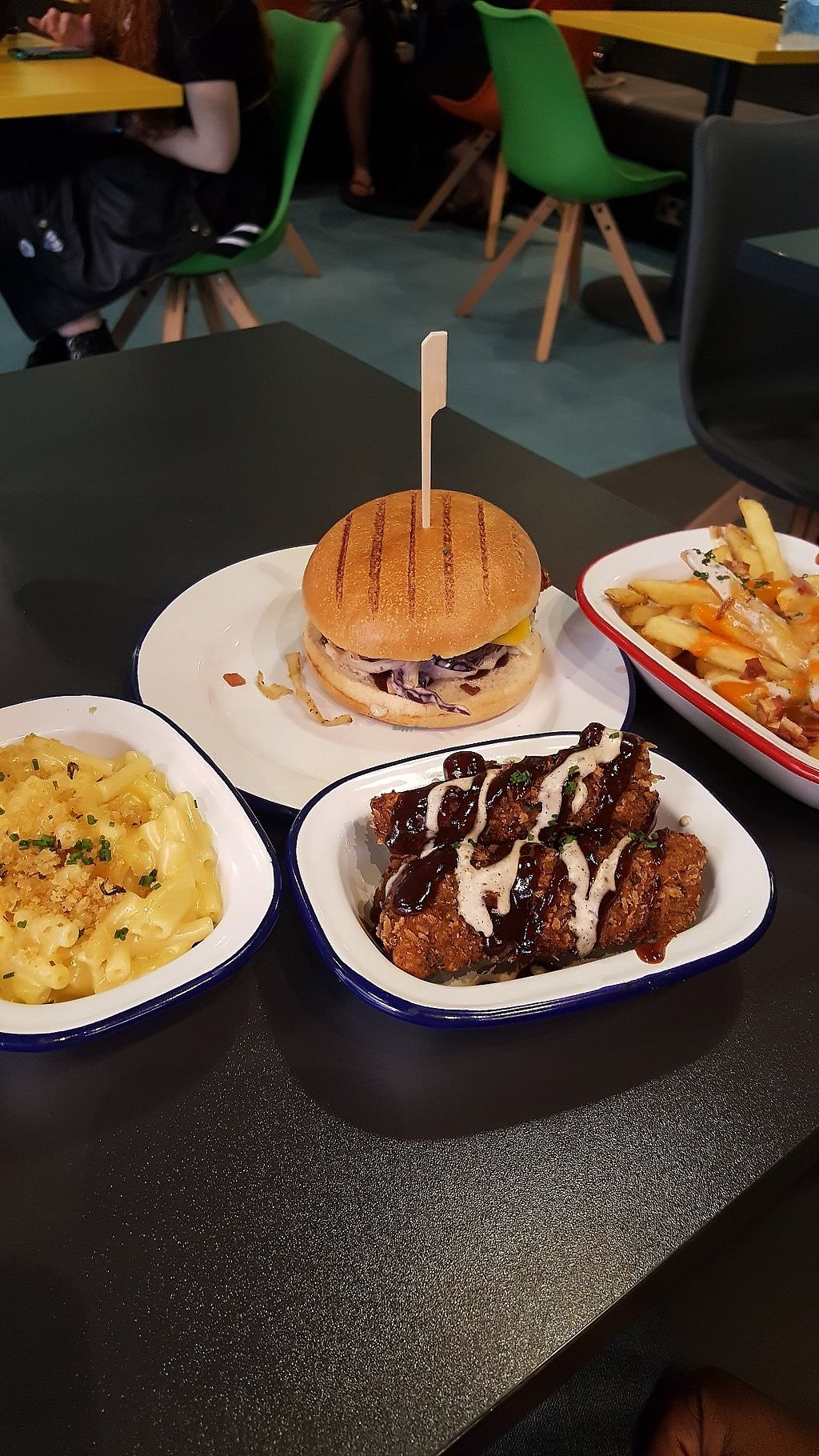 Buffalo fries, mac and cheese, fried chicken and the barbecute burgers…