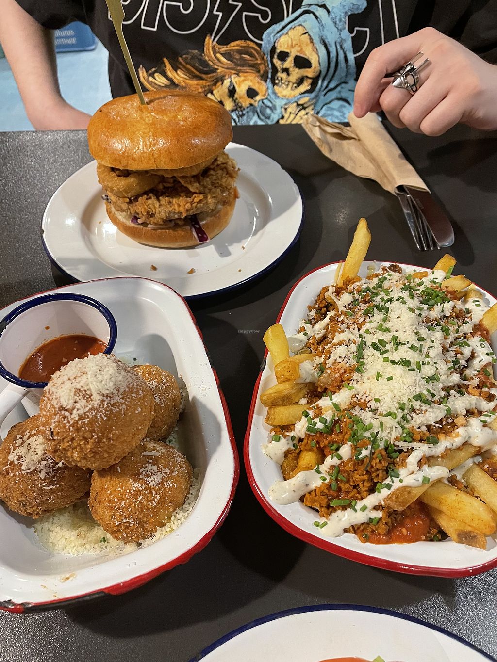 amazing burgers, Mac and cheeze balls and pizza loaded fries!
