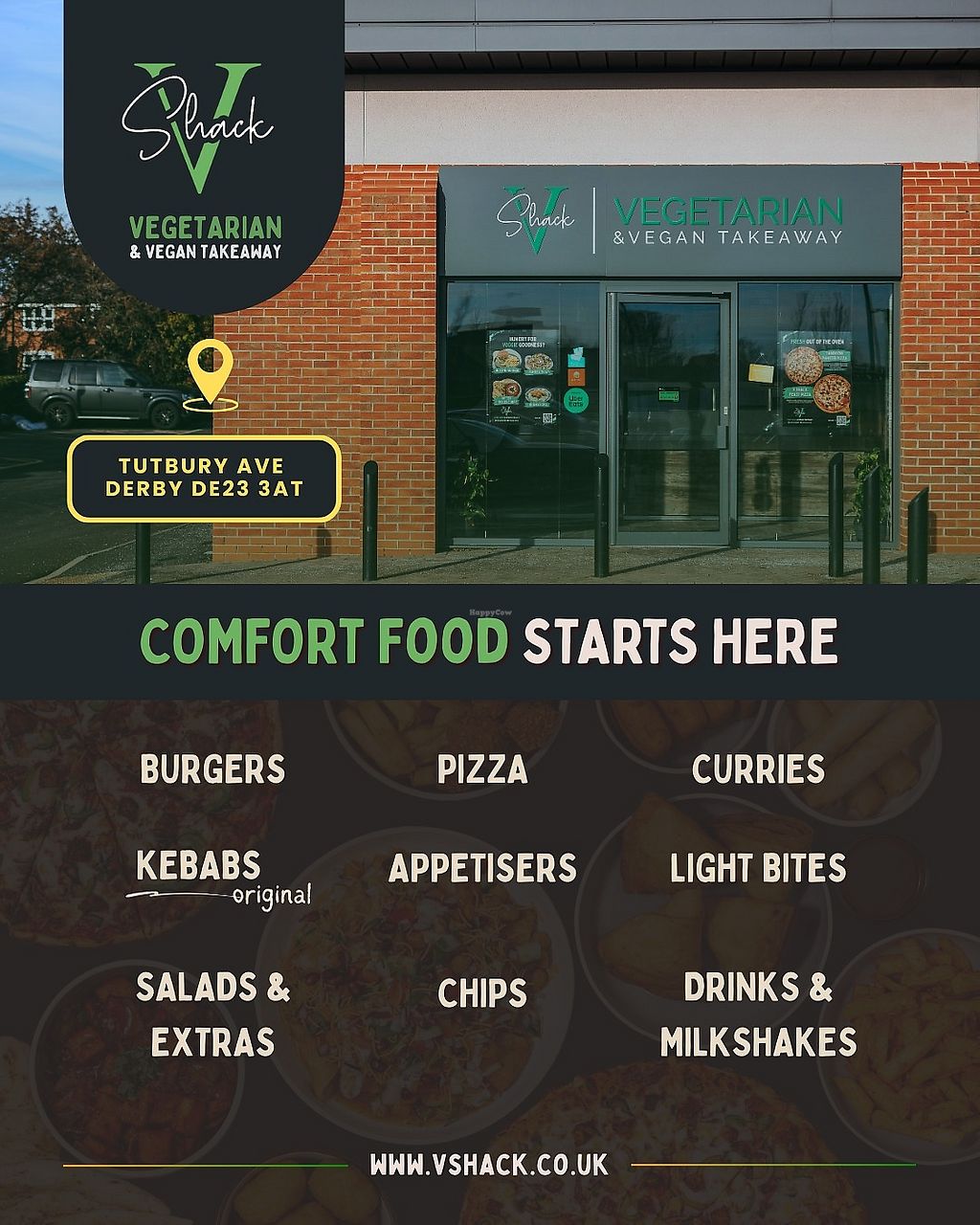 I have had many of vegan products delivered by v shack. The staff are very friendly and attend to any queries promptly. Deliver food on time for a reasonable fee on deliveroo. Love the beyond burgers, v shack chips , samosas, chicken wraps and pizzas. Think they ought put to add bi monthly new menu items to the existing basic menu and if any prove extremely popular add them in full time. Can't rate this place enough. Wish Joey Carbstrong and Tarion Partridge would pay them a visit when in Derby.