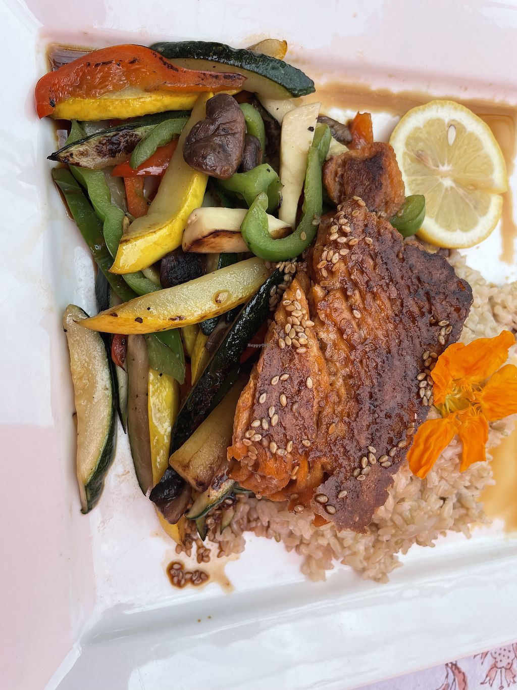 While the menu may be pricey, this place offers so many vegan dishes that you can’t find elsewhere to make up for it. I ordered the salmon, and I’m so thankful the waiter emphasized that it’s soy-based, because I would have questioned if I was really at a vegan restaurant otherwise. Everything was great, portions were good, and everything was fresh. For dessert, I got a banana split with mint chocolate chip ice cream. It 100% had real mint in it. They are serious when they say farm to table. Friendly staff, great ambiance. Going to go again with more time so I can enjoy the quaint town as well!