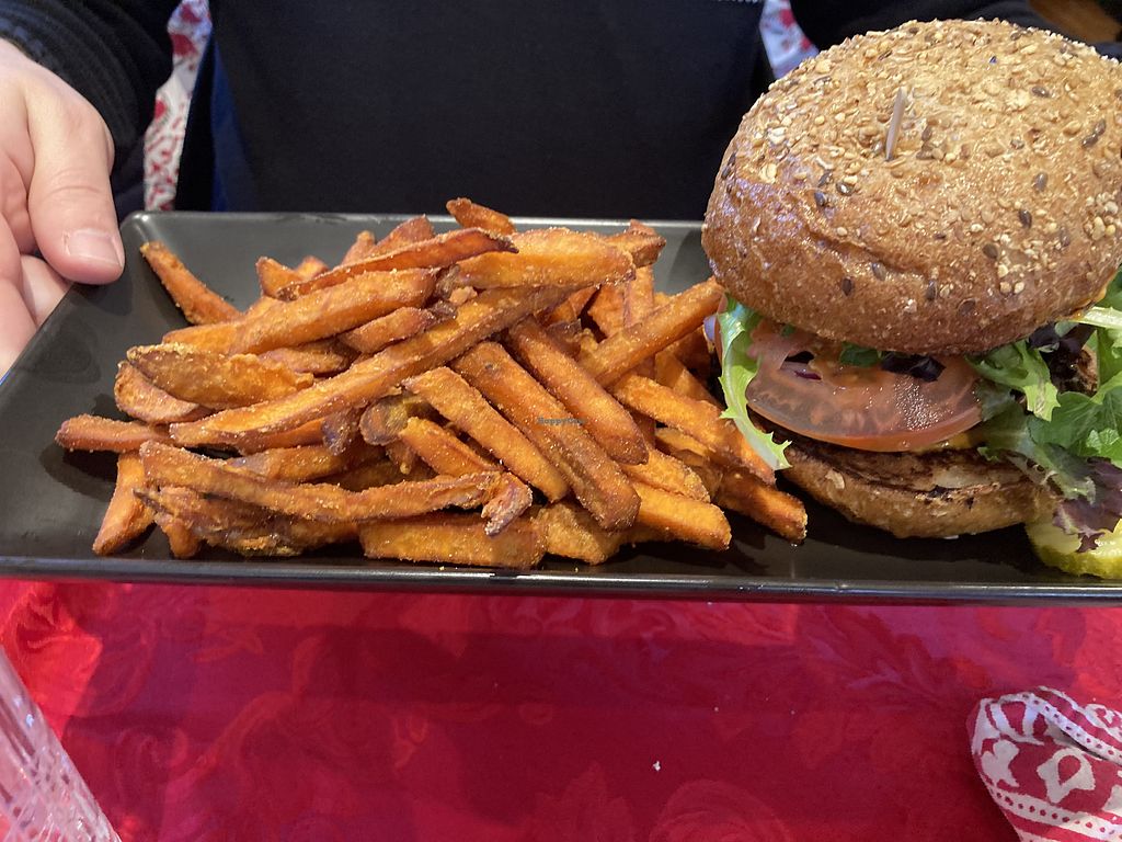 The V-Spot is a very cozy restaurant with plenty of outdoor seating for enjoying a beautiful spring day! I ordered the Truffle Brie Grilled Cheese with Rosemary fries and it was fantastic. My partner ordered the perogies, which they enjoyed. They have a very extensive menu with a number of dishes that I do not often see veganized and I would definitely return to try more of them. Bless you all ❤️