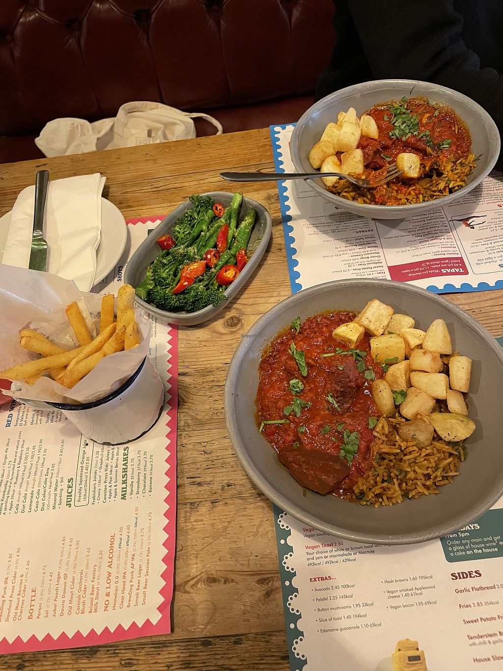 Biryani bowl, fries and tenderstem