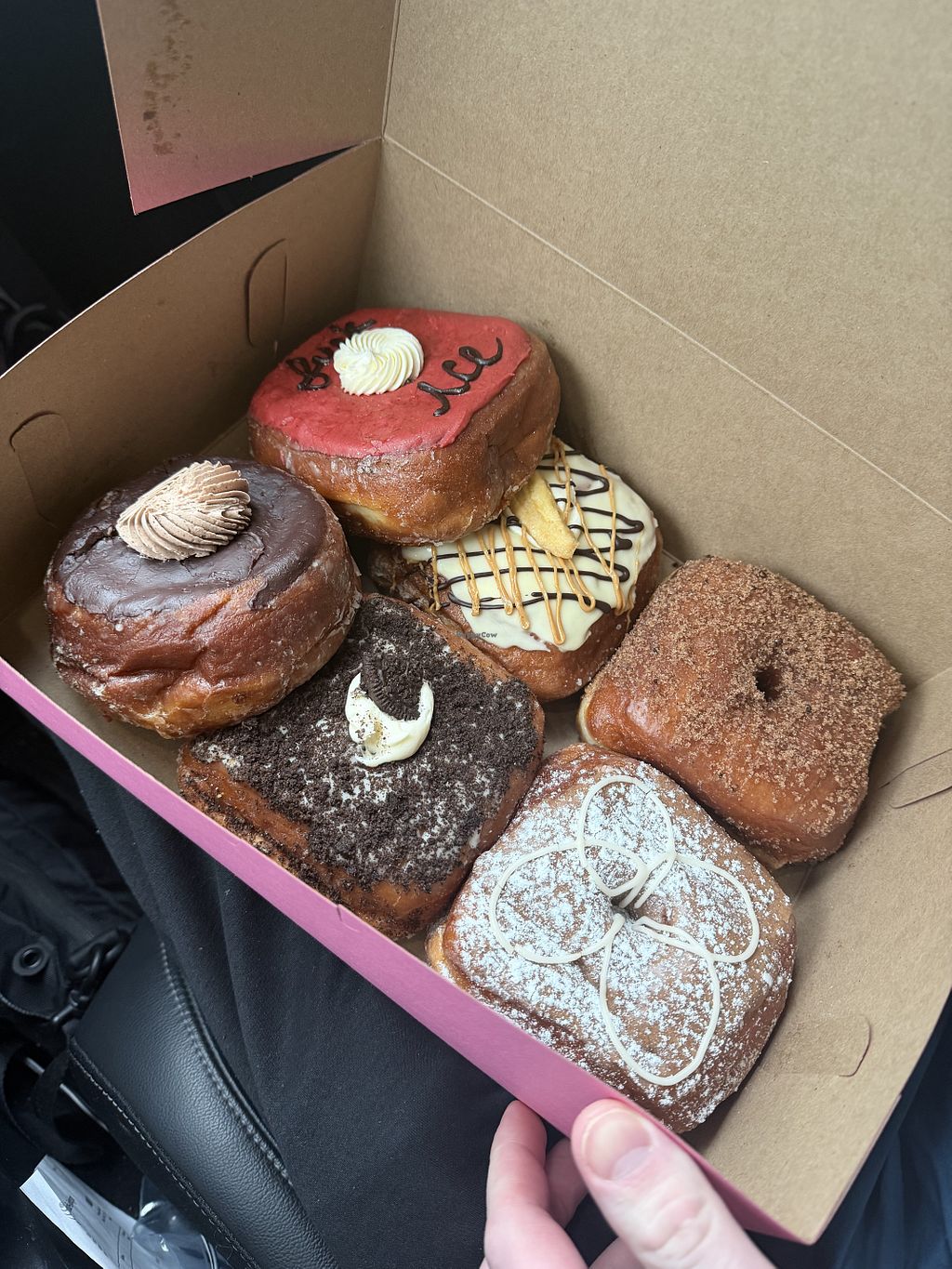 Animal cracker donut, divine chocolate donut, and apple turnover