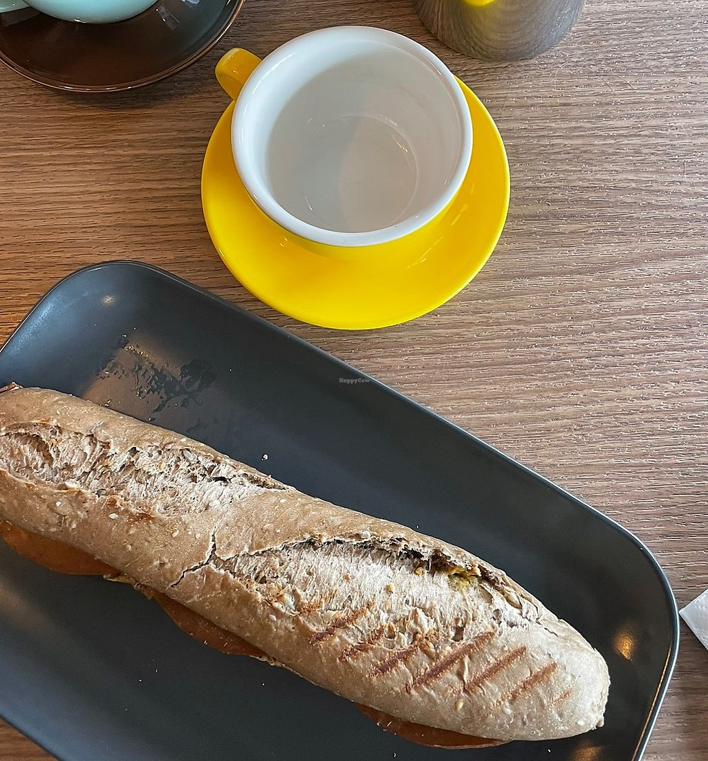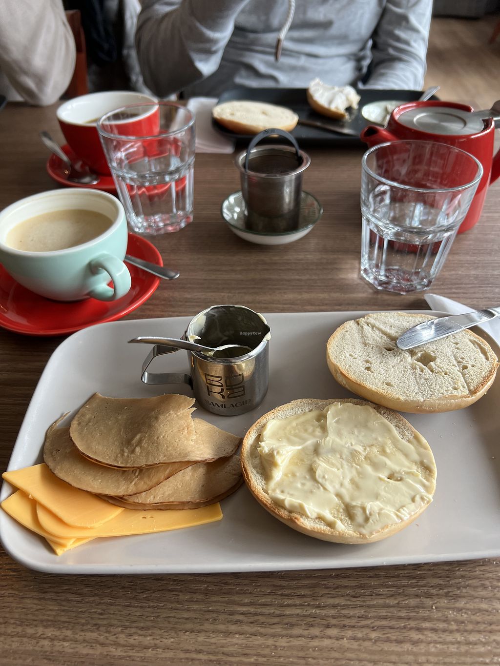 ham and cheese croissant, bagel with pesto and cream cheese, french pr…