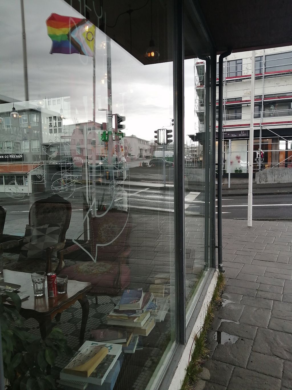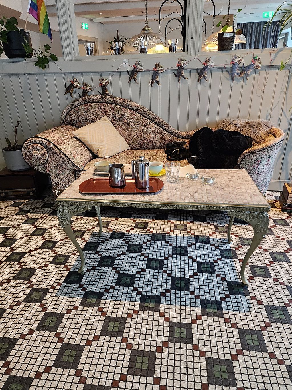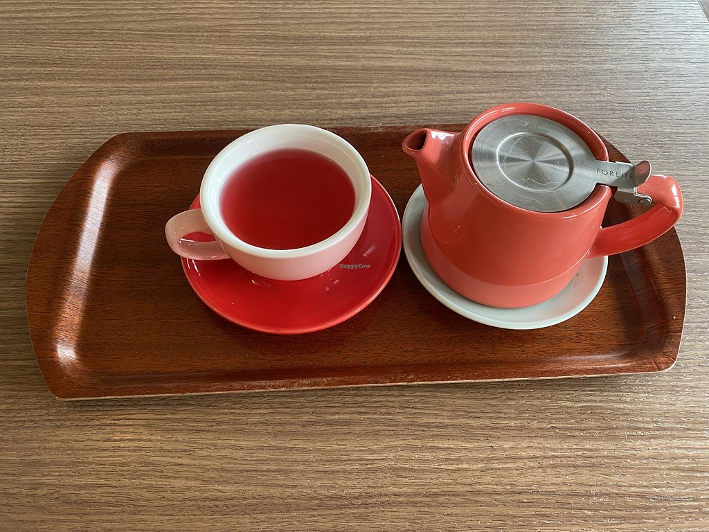 Waffle with vegan cream, jam, and chocolate frosting, and a french pre…