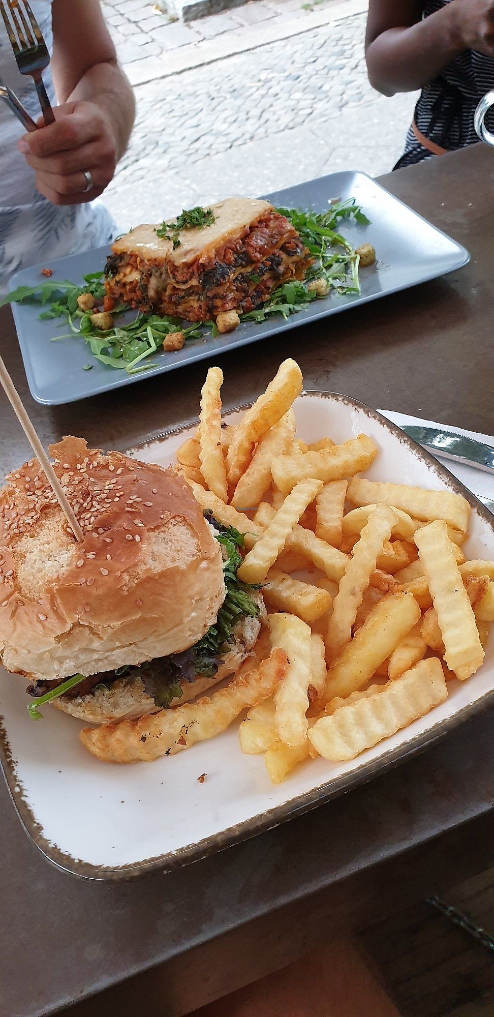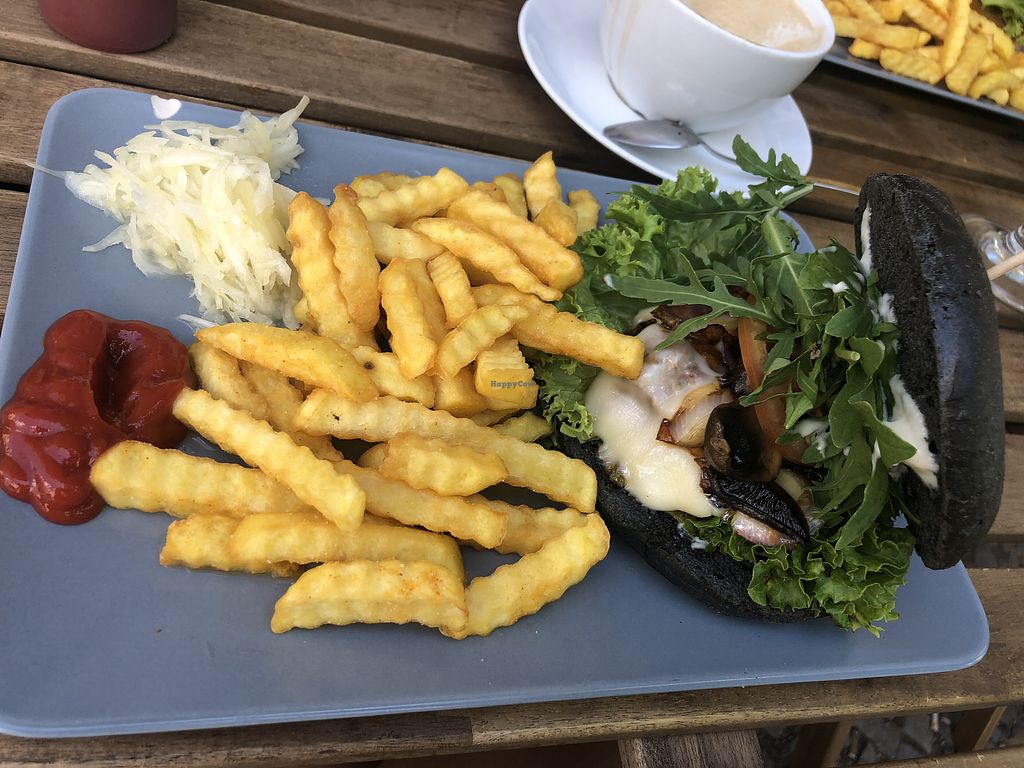 I tried the gyros plate and it was awesome! The ‘’gyros’’ tasted really good, the salad was nicely fresh, the potato fries crunchy and the vegan mayonnaise tasted great too. My friend had the avocado guacamole burger with sweet potato fries and it tasted super too. Just only the lemonade was kind of strange. We loved the nice and comfortable atmosphere and the ambience. It was a great experience and we traveled very far only to try this restaurant and it was a good choice.