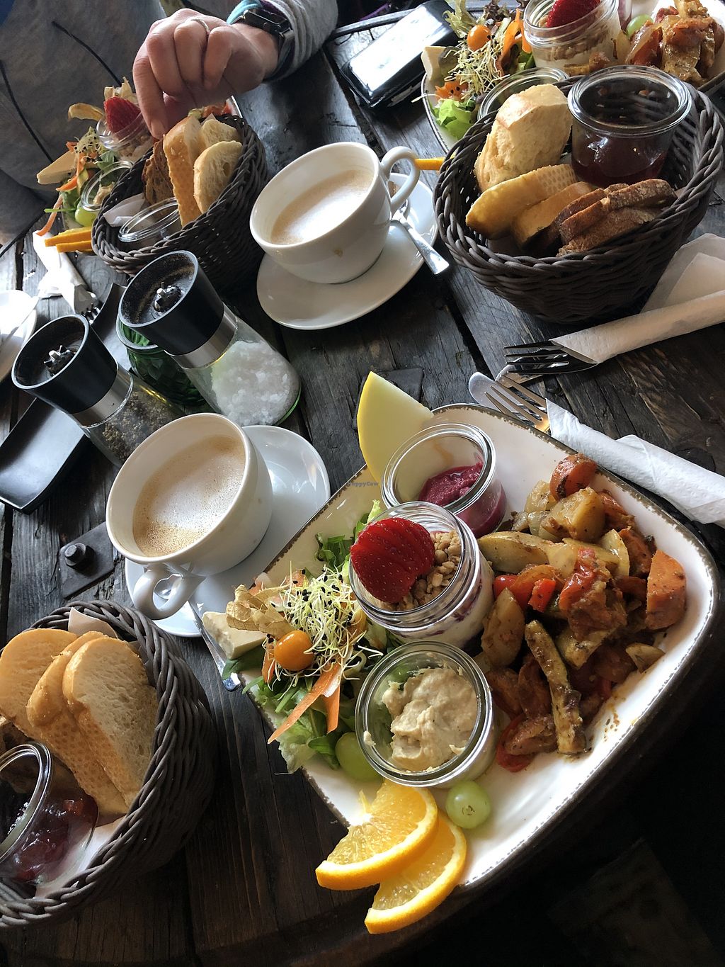 I am getting pissed off about the Berliner options. Everywhere has hummus and wraps. No creativity at all. For breakfast there is no omelette, no strawberry milk shake. We wanted both as seen here in pictures and they don't do that anymore. Only wraps.
